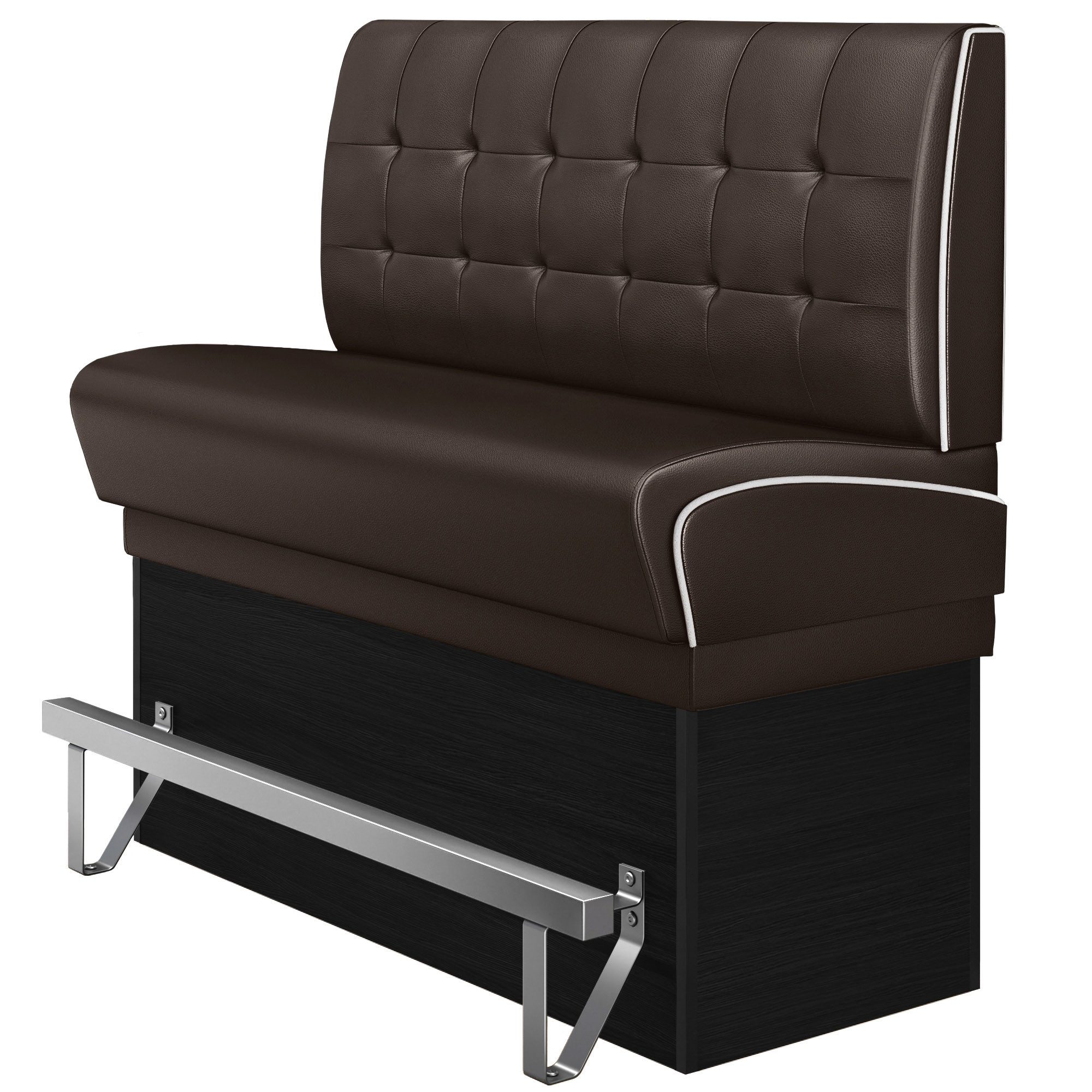 Diese „Diner“ Hochbank kombiniert einen besonderen Komfort mit stilvollem Design. Ein ergonomisch geformtes Schaumstoffinnenleben verbirgt sich unter dem Bezug aus Kunstleder. Lehnen Sie sich also entspannt zurück und genießen eine geschmackvolle Mahlzeit auf einer anschmiegsamen und sanften Polsterung. Die weiche Polsterung, die breite Sitzfläche und die passende Barsitzhöhe sorgen für ein komfortables Sitzerlebnis, außerdem bietet die robuste Konstruktion Stabilität und Tragfähigkeit auf höchstem Niveau. Die Bank lässt viele Möglichkeiten der individuellen Raumgestaltung offen und passt sich optisch perfekt jedes Interieur an. Sie ist perfekt geeignet für Cocktailbars, Lounges, Restaurants und Cafés.