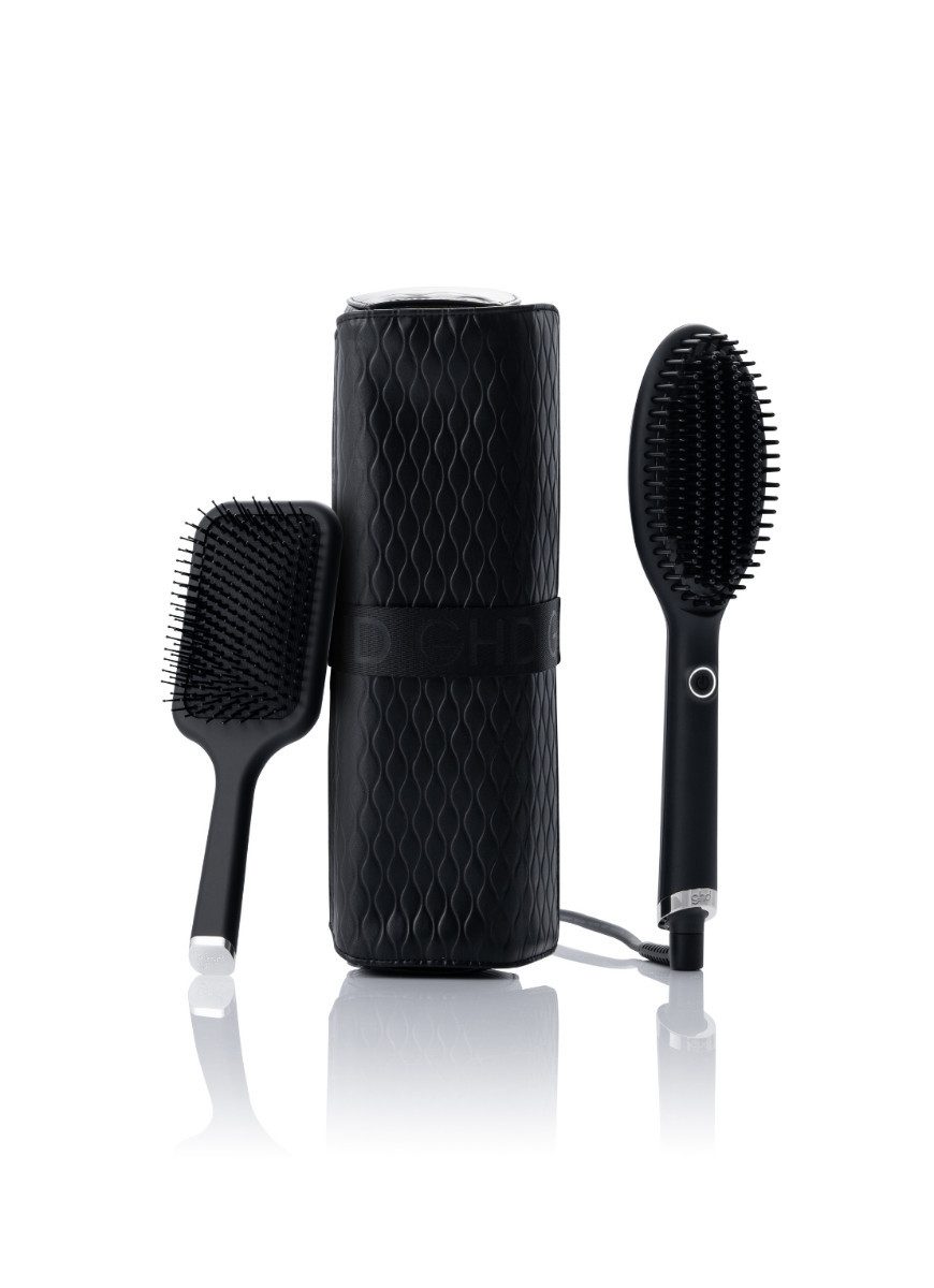 ghd Glide Hot Brush Giftset Schwarz Dieses Geschenkset von ghd enthält die Glide Hot Brush und die Paddle Brush. Dieses Set enthält auch ein superpraktisches und modisches Federmäppchen. Die ghd Glide Hotbrush ist die neue Hotbrush, die das Haar schnell kämmbar und geschmeidig macht. Diese Hotbrush ist der perfekte Partner für das Styling am zweiten Tag. Die Giftset-Version der Hotbrush besteht aus der Wärmebürste, die in einer exklusiven hitzebeständigen Hülle verpackt ist. Die Borsten mit Pearl-Keramikbeschichtung sorgen dafür, dass die Borsten leicht durch das Haar gleiten und ein knickfreies Ergebnis liefern. Die Hotbrush verfügt über zwei hochwertige Keramikheizelemente, die dafür sorgen, dass die Bürste eine konstante Temperatur von 185 °C hat. Durch die Verwendung der Ghd Glide Hotbrush werden die negativen Ladungen im Haar wiederhergestellt und statische Elektrizität und Frizz beseitigt. Die Bürste verfügt über kurze und lange Borsten, wodurch das Haar in einem Zug gestylt wird. Die Wärmebürste verfügt über einen automatischen Schlafmodus, was bedeutet, dass sich die Bürste nach 60 Minuten Inaktivität automatisch ausschaltet. Dank des 2,7 m langen Kabels ist die Bedienung äußerst einfach. Eigenschaften ghd Glide Hot Brush Giftset Schwarz * Wärmebürste * Keramiktechnologie mit Ionisator * Perlmutt-Keramikbeschichtung * Konstante Temperatur von 185 ℃ * Bink-freies Ergebnis * Automatischer Schlafmodus * Kabellänge: 2,7 m Gebrauchsanweisung Die Wärmebürste ist einfach zu bedienen. Teilen Sie die Haare zunächst in zwei Teile, damit Sie alle Haare problemlos mitnehmen können. Schalten Sie die Bürste mit nur einem Knopf ein und warten Sie, bis sie die richtige Temperatur erreicht hat. Danach können Sie mit dem Stylen der Haare beginnen.