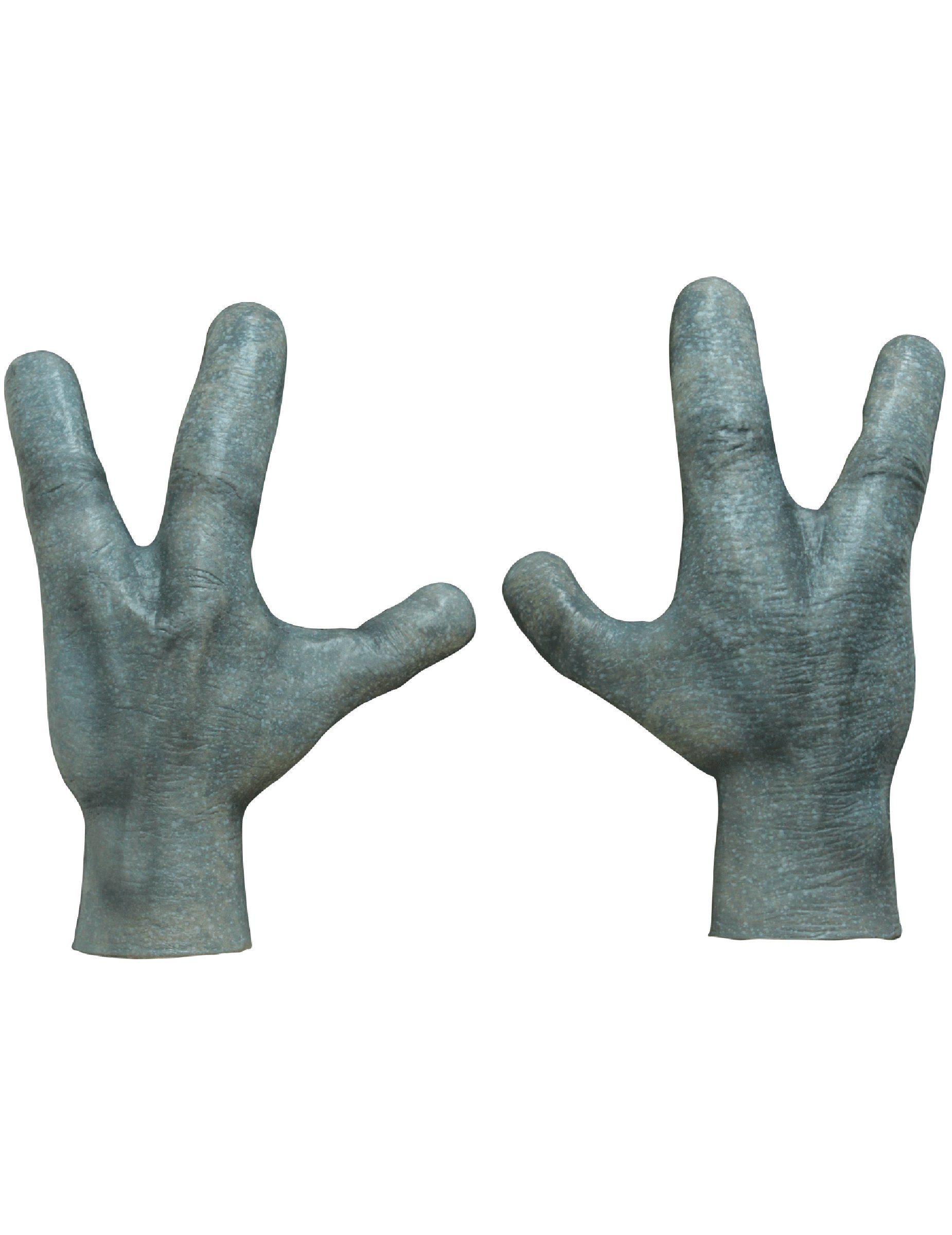 Mithilfe dieser schicken Alienhände werden Sie zu einem Außerirdischen, der nach der Herrschaft in der Galaxie greift! Die Außerirdischen-Hände bestehen aus Latex und beeindrucken durch ihr äußerst detailverliebtes Design. Jede Ader und jedes Fältchen der Kostüm-Handschuhe kommen perfekt zur Geltung. Da die Alien-Handschuhe sehr anpassungsfähig sind, eignen sie sich für jede Handgröße. Sie reichen bis zum Handgelenk. Realistischere Alien-Accessoires für Ihr UFO Outfit lassen sich kaum denken, sodass Sie auf der baldigen Faschings- oder Halloween-Party im Mittelpunkt der Aufmerksamkeit stehen werden. Achtung! Nicht für Kinder unter drei Jahren geeignet. Kann Kleinteile enthalten - Erstickungsgefahr.