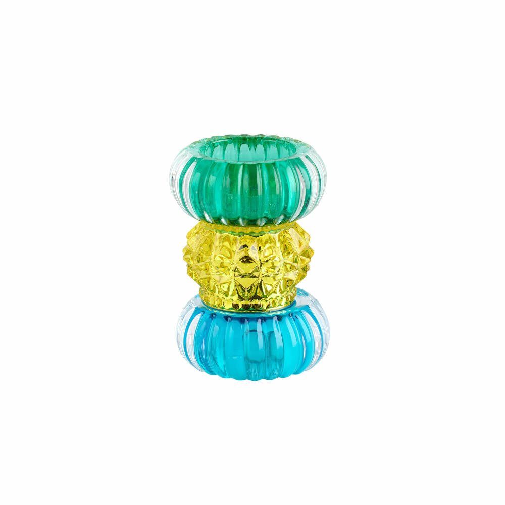 Lieferumfang | 1 Gift Company Teelichthalter Sari rund, Kerzenständer, Kristallglas, Blau, Gelb, Grün, 11.5 cm, 1093901010 |