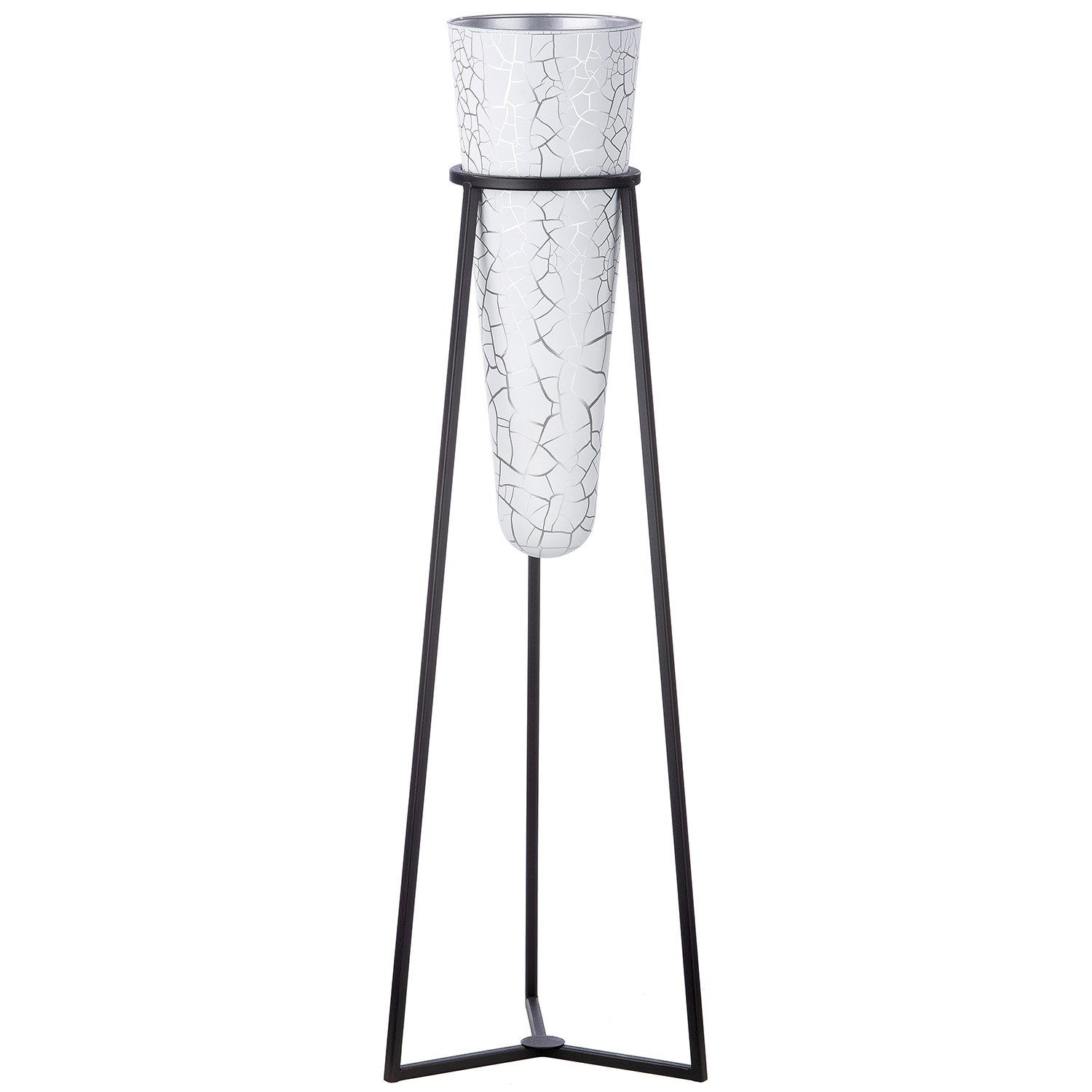 Die Vase Future aus Glas und Metall besticht durch ihre elegante Kegelform und die stilvolle Kombination aus weißer Farbe und schwarzen Akzenten.