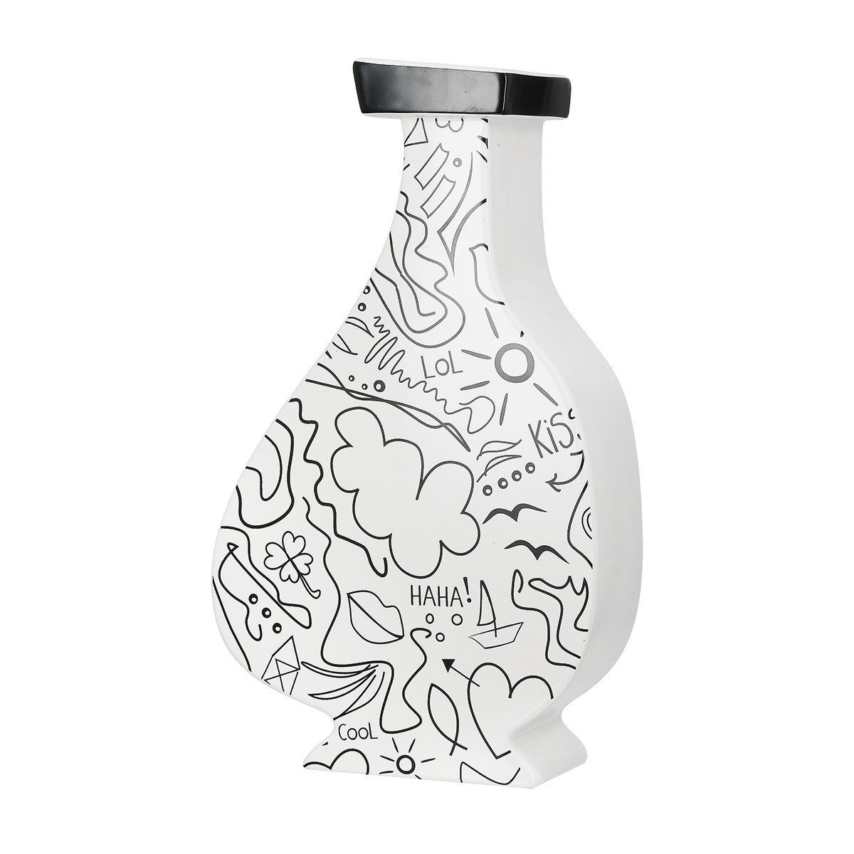 Diese stilvolle Kragenvase ist ein echter Blickfang und ein Muss für Liebhaber moderner Kunst. Mit ihrem einzigartigen Einliniendesign in Schwarz auf weißer Keramik bringt sie künstlerische Leichtigkeit und Humor in jeden Raum. Die abwechslungsreichen Symbole und Zeichnungen, wie Wolken, Herzen und kleine Statements wie "LOL" und "KISS", verleihen der Vase eine lebendige Ausstrahlung. Dank der hochwertigen Verarbeitung und des wasserdichten Designs ist sie sowohl für frische Blumen als auch als eigenständiges Deko-Objekt ideal. Eigenschaften: Material: Robuste Keramik in weißem Finish Besonderheit: Beidseitig gestaltetes Design, wasserdicht und langlebig Kategorie: Kragenvase, modernes Dekorationsobjekt Maße: Длина: 9 cm Breite: 19 cm Höhe: 32,5 cm