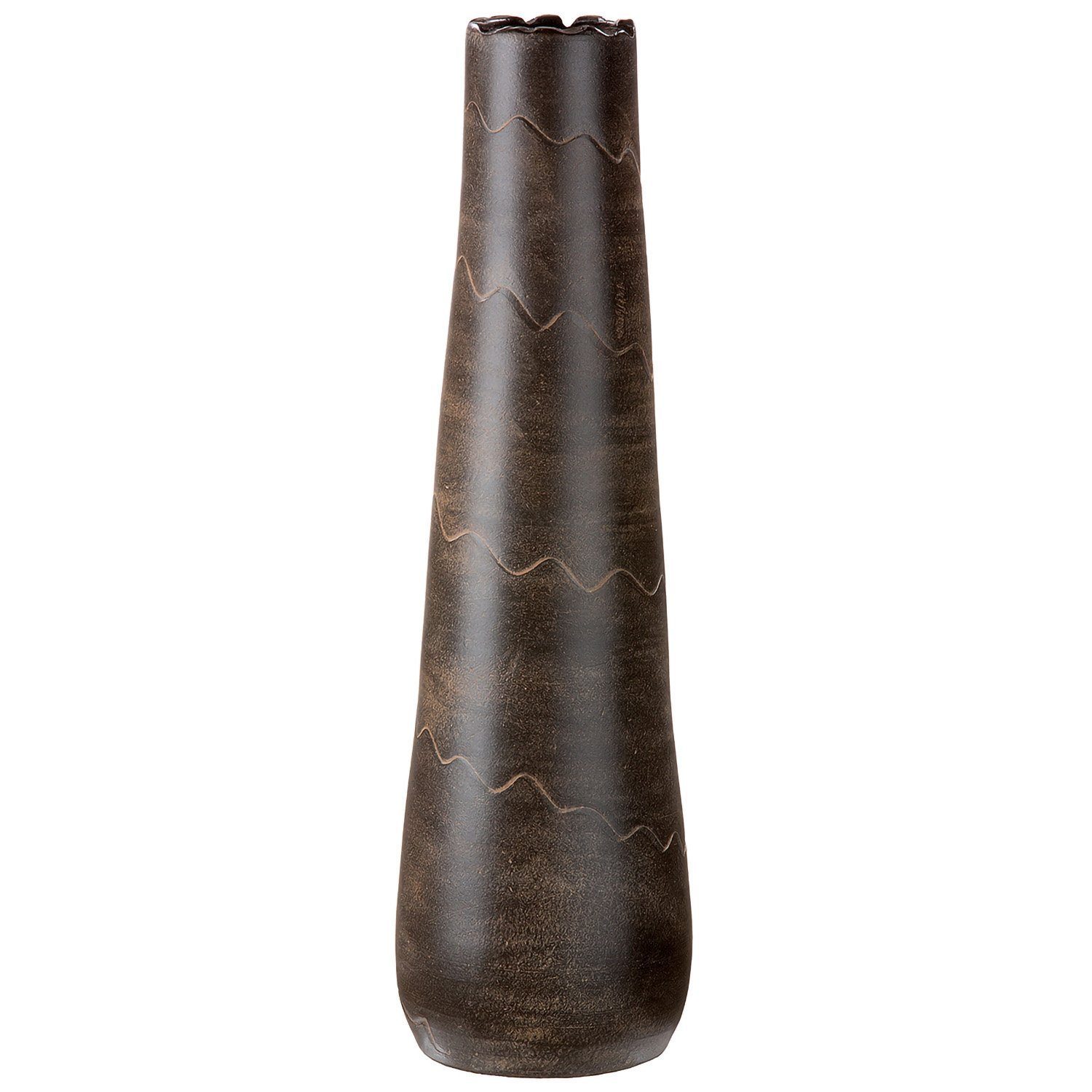Die Vase Wave aus Keramik in braun besticht durch ihre konische Form und eine Höhe von 60 cm, ideal für große Blumenarrangements.