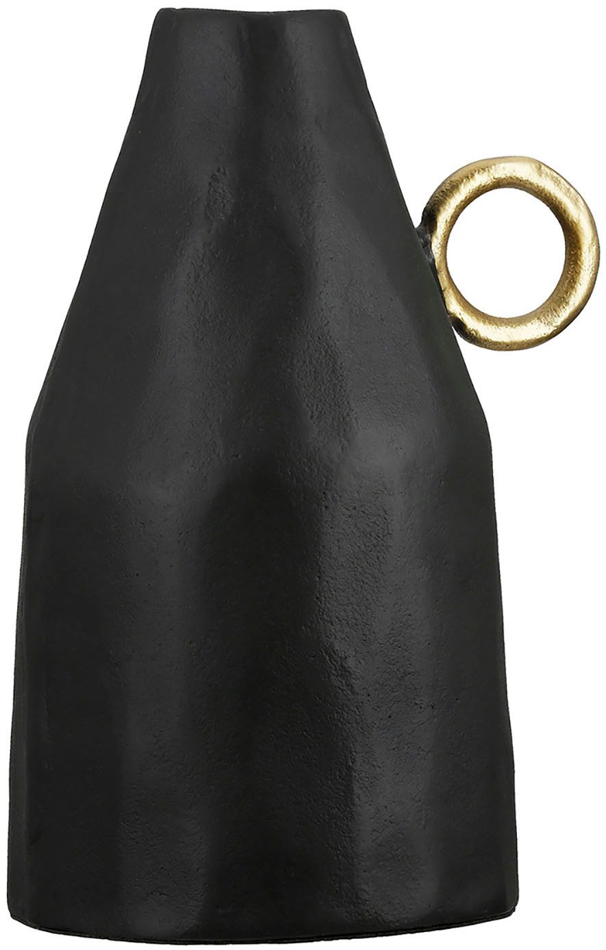 Die Vase Dora, aus dem spezifischen Material Aluminium ist wasserdicht und hat eine raue Oberfläche in der Farbe schwarz gefärbt. Die Halterung ist ein goldfarbener Ring und der Artikel hat das Maß H.31 x B.14,5 x T.14,5 cm. Eine Vase darf viel mehr sein als nur schlichter Gebrauchsgegenstand. Sie ist ebenso ein Deko-Element, als dass sie auch eine Funktionalität hat. Ob mit einem Arrangement bestückt als lächelnde Begrüßung im Eingangsbereich, oder als freundliche Dekoration auf Tisch und Tafel - sie macht selbst ohne schmückendes Beiwerk eine gute Figur und ist schnell als außergewöhnlicher Deko-Akzent platziert. Mit einem harmonischen und ausgefallenem Design bildet sie besonders in minimalistischen und gradlinigen Interieurs einen freundlichen und geschmackvollen Kontrast. Es muss nicht immer eine rote Vase sein. Form, Farbe und Material, im harmonischen Zusammenspiel, bieten das optimale Gefäß für ein farbenfrohes Gebinde.