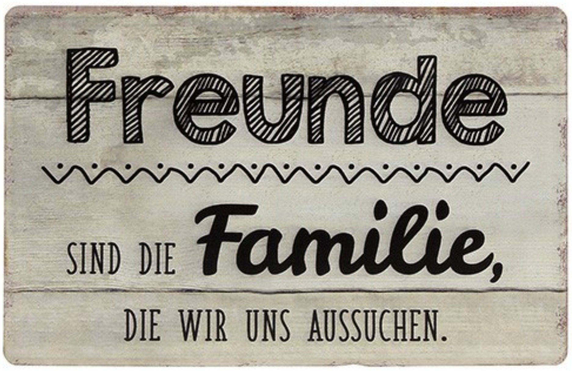 Grosses Familien Metallschild, Dekoschild, top angesagt, im Retro - Vintage Stil. METALLDRUCK, kein Aufkleber. Modell: FREUNDE SIND DIE FAMILIE DIE WIR UND AUSSUCHEN.