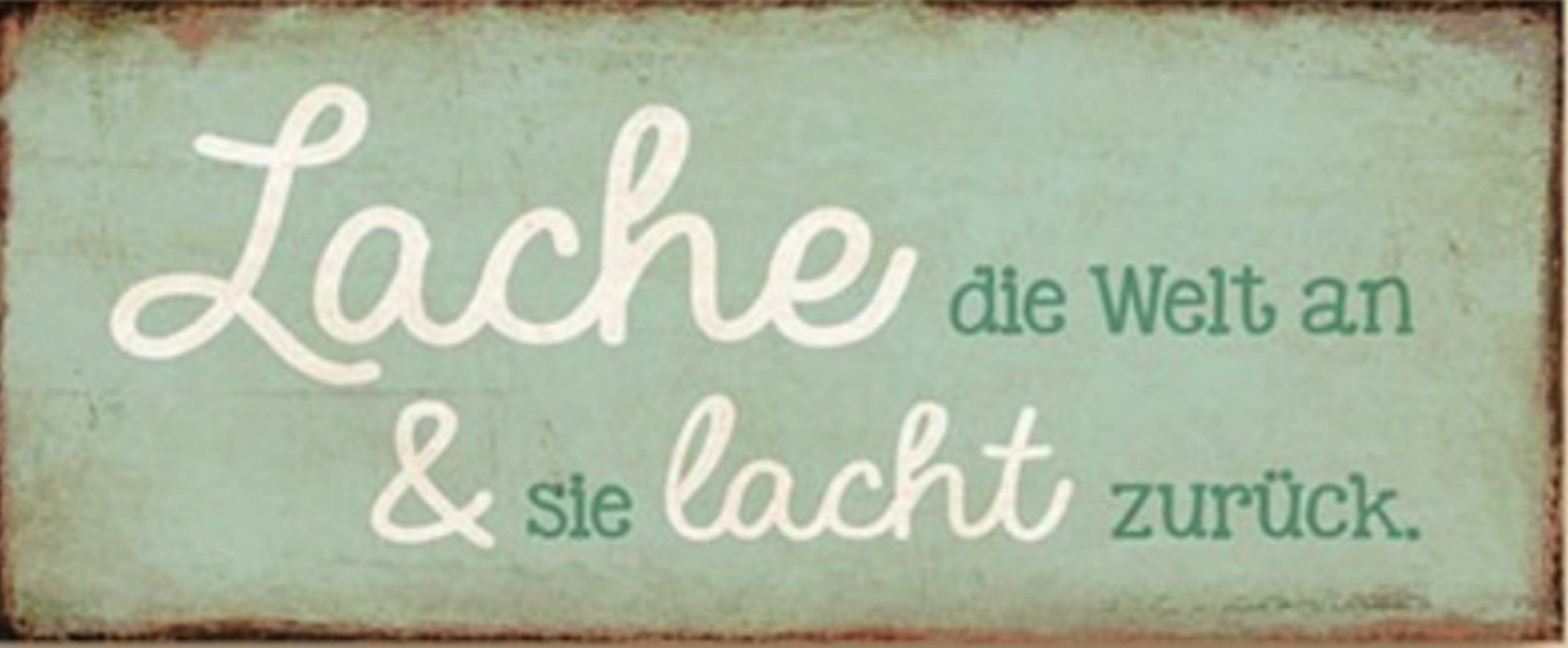 Metallschild Dekoschild, top angesagt, im Retrostil Gelieferter Spruch: - LACHE DIE WELT AN & SIE LACHT ZURÜCK