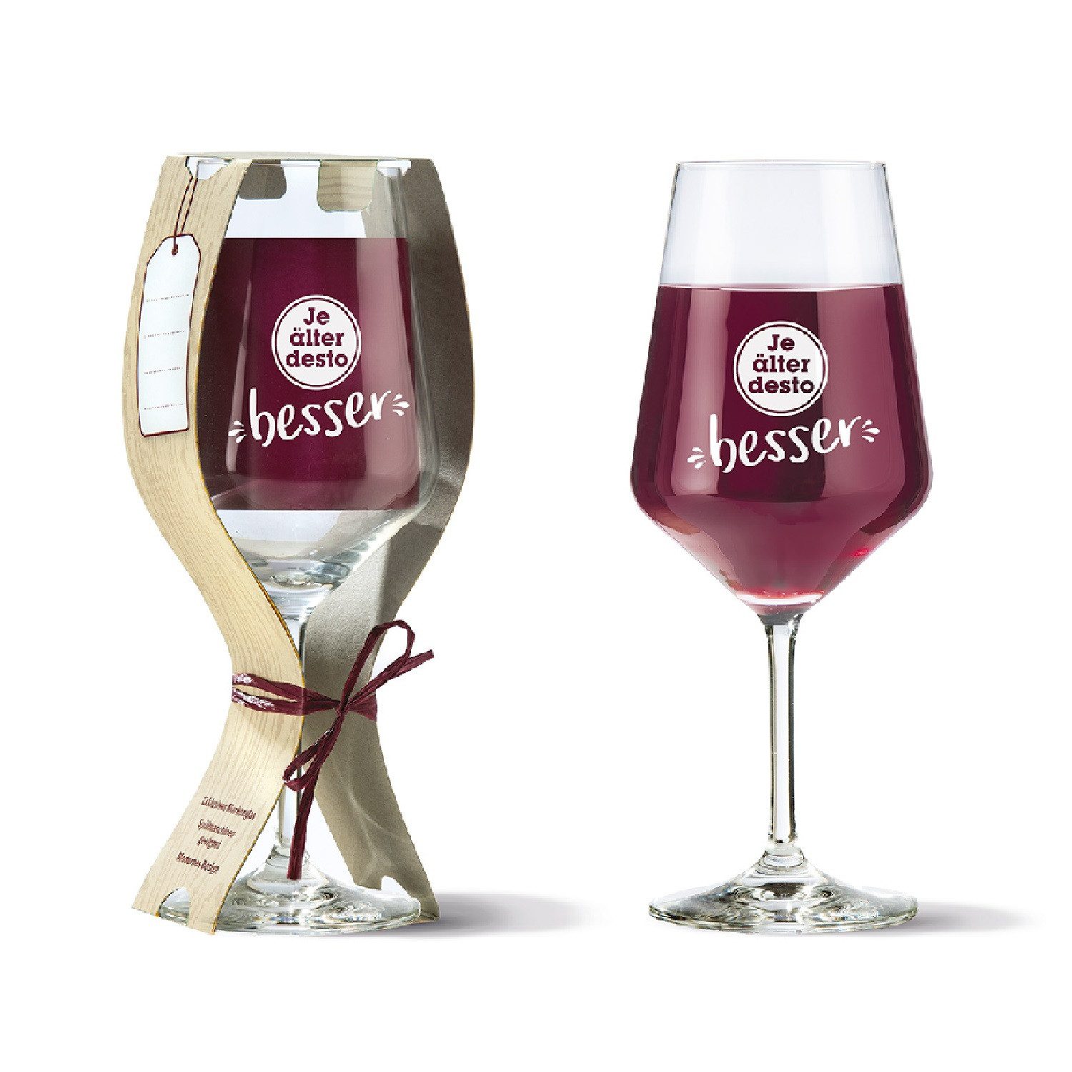 Weinglas mit der Aufschrift 'Je älter desto besser!'