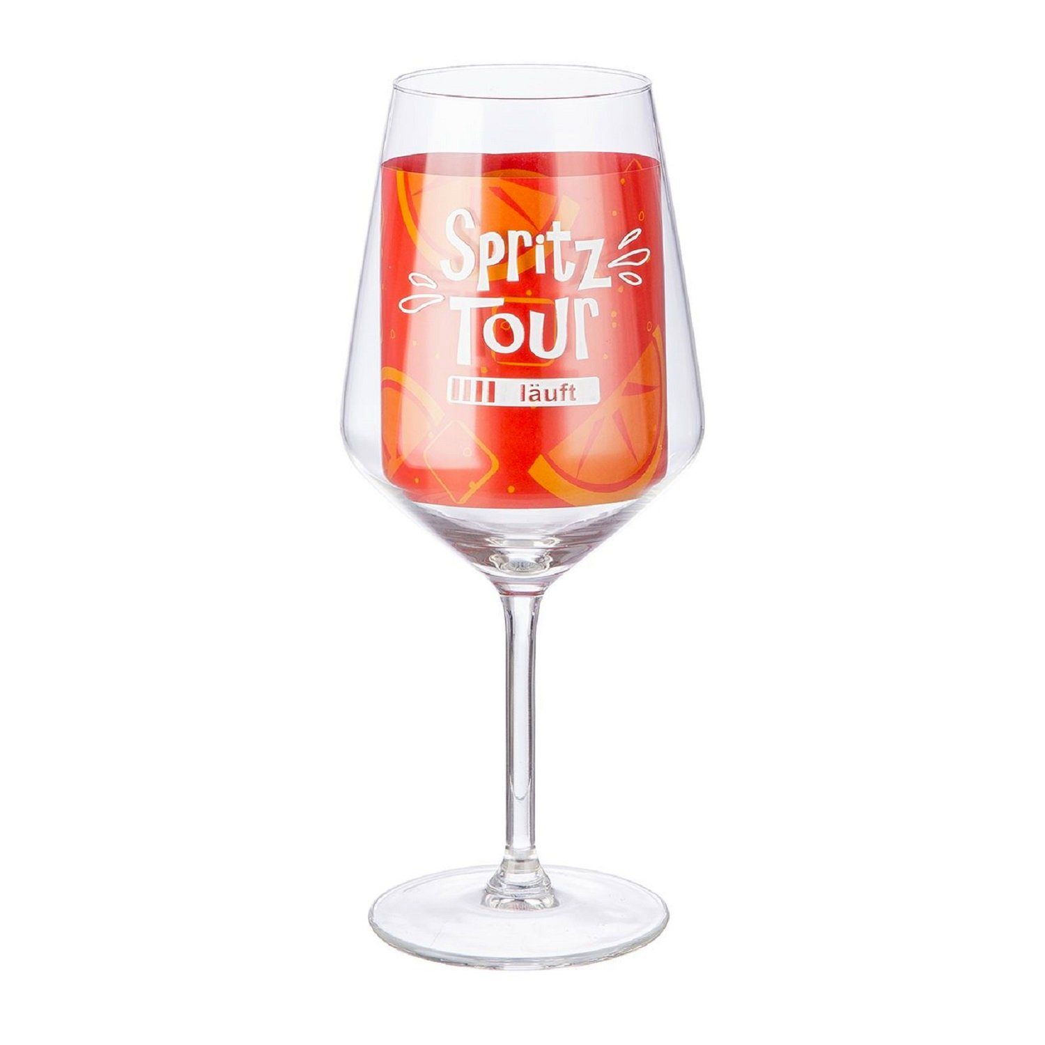 Weinglas mit der Aufschrift 'Spritz Tour'