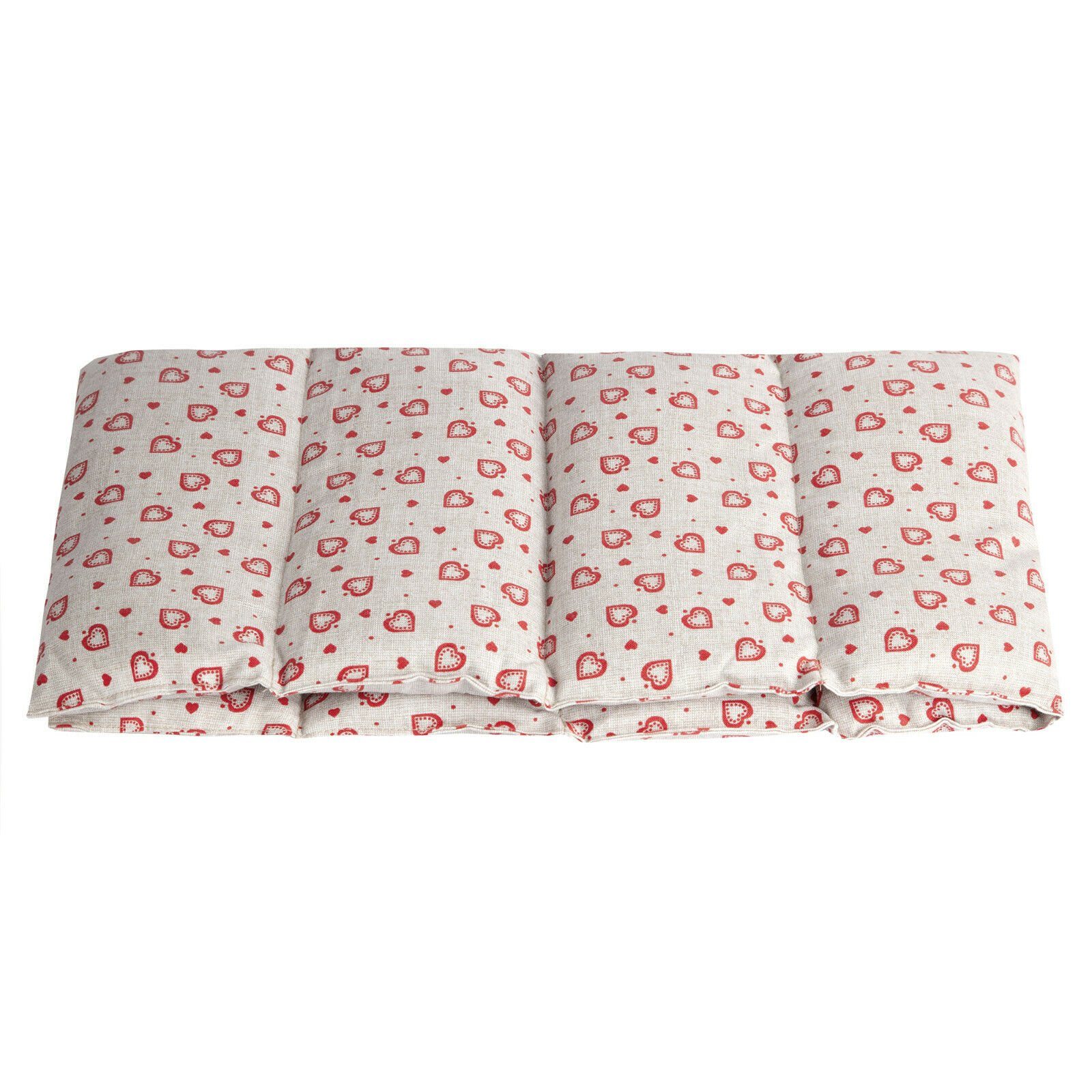Wissenswertes | • -> Als Wärmekissen für die Mikrowelle: <- Bei ca. 600 Watt (mittlere Stufe) ca. 1,5 Min. Sollte die gewünschte Wärme noch nicht erreicht worden sein, dann schütteln Sie ihr Kissen gut durch und erwärmen es in Abständen von 15 Sekunden weiter, bis die gewünschte Wärme erreicht ist. • -> Als Wärmekissen für den Backofen: <- Backofen nicht vorheizen. Backpapier verwenden. Kissen muss frei liegen. Stellen Sie eine Tasse Wasser mit in den Backofen. Umluft: Mittlere Schiene, 130° C, ca. 9-11 Min., oder Unter- und Oberhitze: Mittlere Schiene, 150° C, ca. 9-11 Min. • -> Als Kältekissen: <- Geben Sie das Kissen für mehrere Stunden in den Kühlschrank oder die Gefriertruhe. |