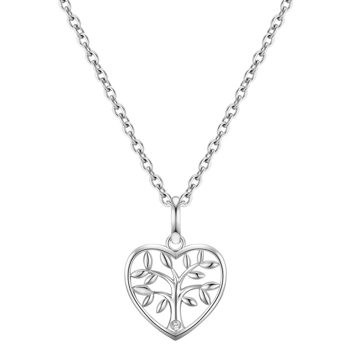 • Halskette für Damen mit Herz-Anhänger und Lebensbaum-Motiv