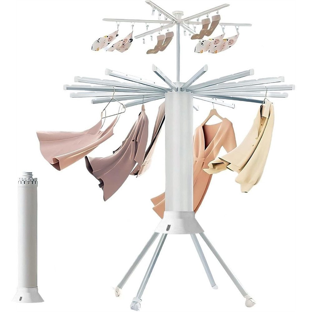 Innovatives zylindrisches Faltdesign für platzsparende Aufbewahrung. Von 172 cm Trocknungshöhe mit einem Handgriff auf 79 cm faltbar – ideal für kleine Wohnungen und Mieter!