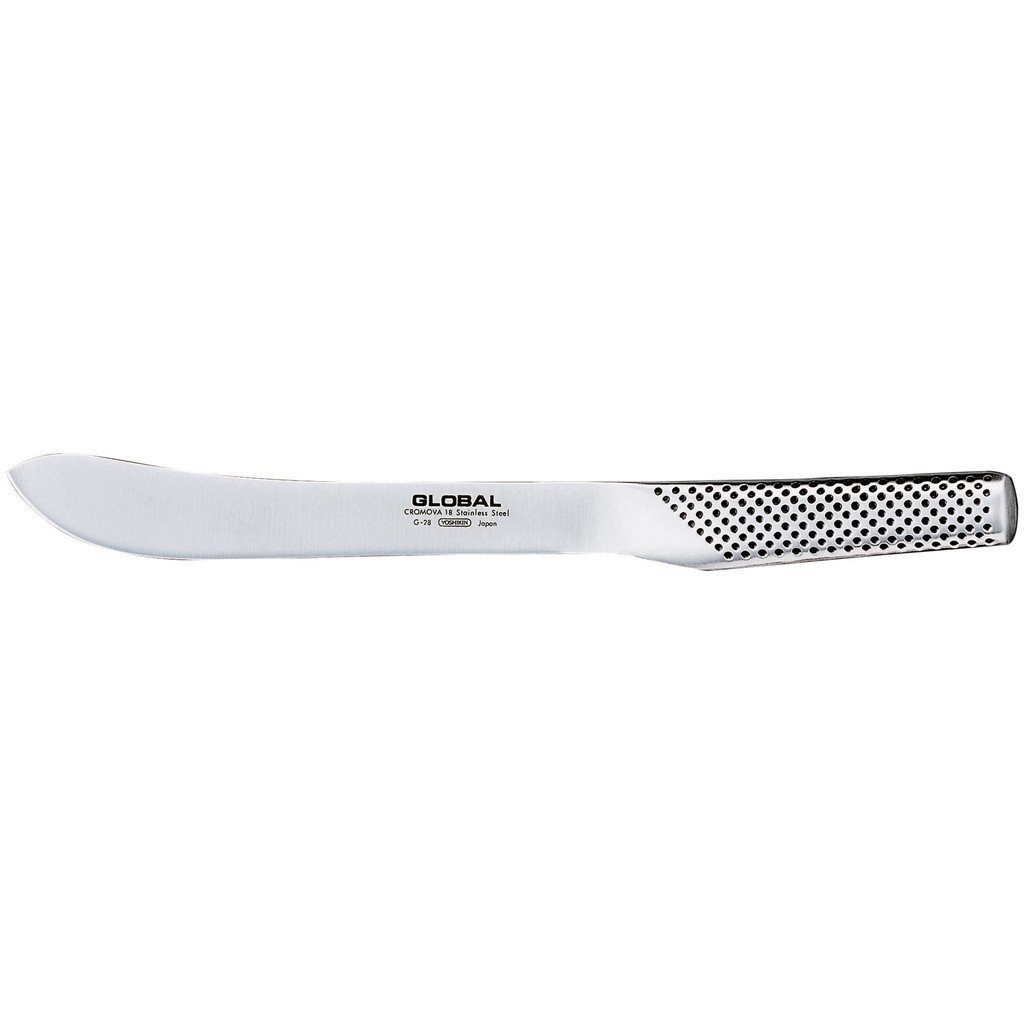 Mit seiner stilvoll zur Spitze hin nach oben geschwungenen Klinge ist das G-28 Global Yoshikin Fleischmesser ein Fleischmesser par excellence. Wer es einmal in Gebrauch hatte, wird zukünftig seine Kalbs- und Rinderfilets immer selbst schneiden wollen. Mit seiner Klingenlänge von 18 cm ist es zum Portionieren sehr gut geeignet.
