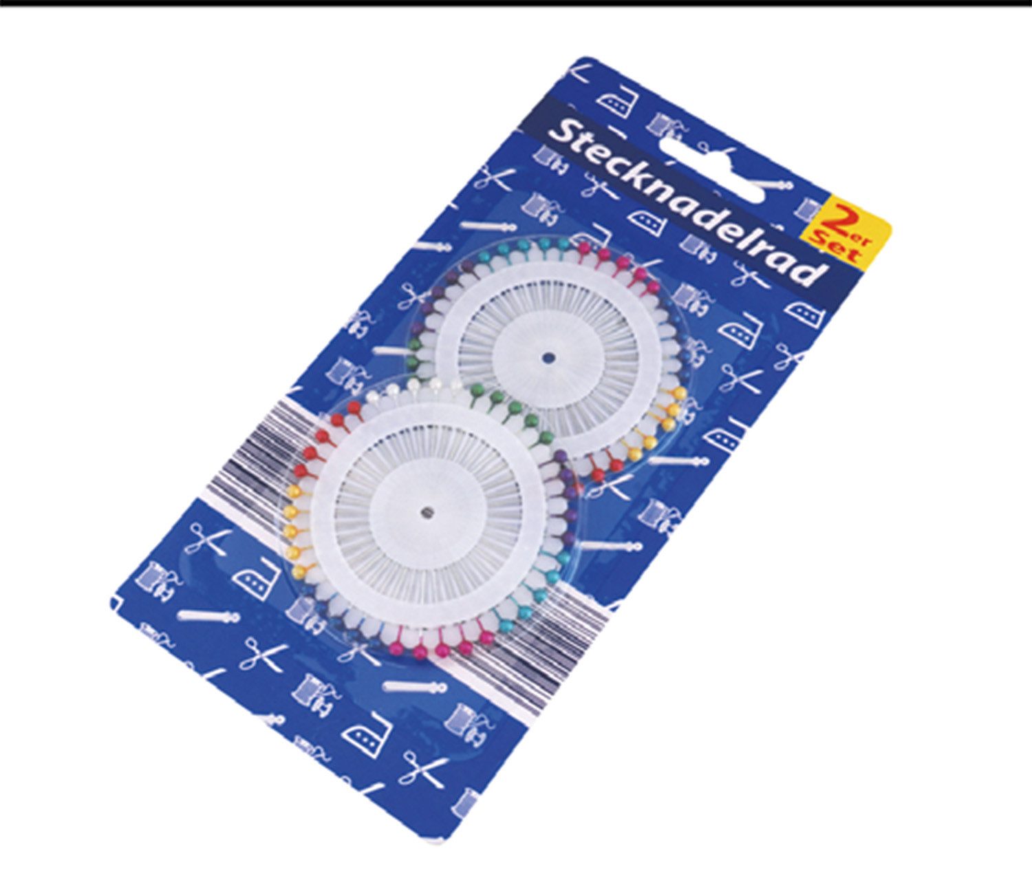 Lieferumfang | 2 Stecknadelräder mit 40 Nadeln, lang |
