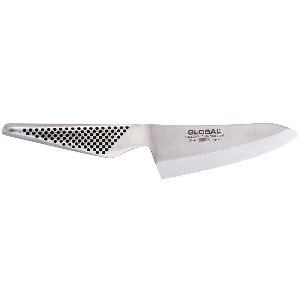 Zum Schneiden und Portionieren von kleinen Fischfilets kann das GS-04 Global Yoshikin Kleines Fischmesser genutzt werden. Es ist ein kleines Fischmesser, da die einseitig geschliffene Klinge nur 14 cm lang ist. Fischmesser werden vorwiegend zum Schneiden von Fisch mit Gräten eingesetzt. Die dicken Klingen eignen sich auch hervorragend zum Schuppen von Fisch.