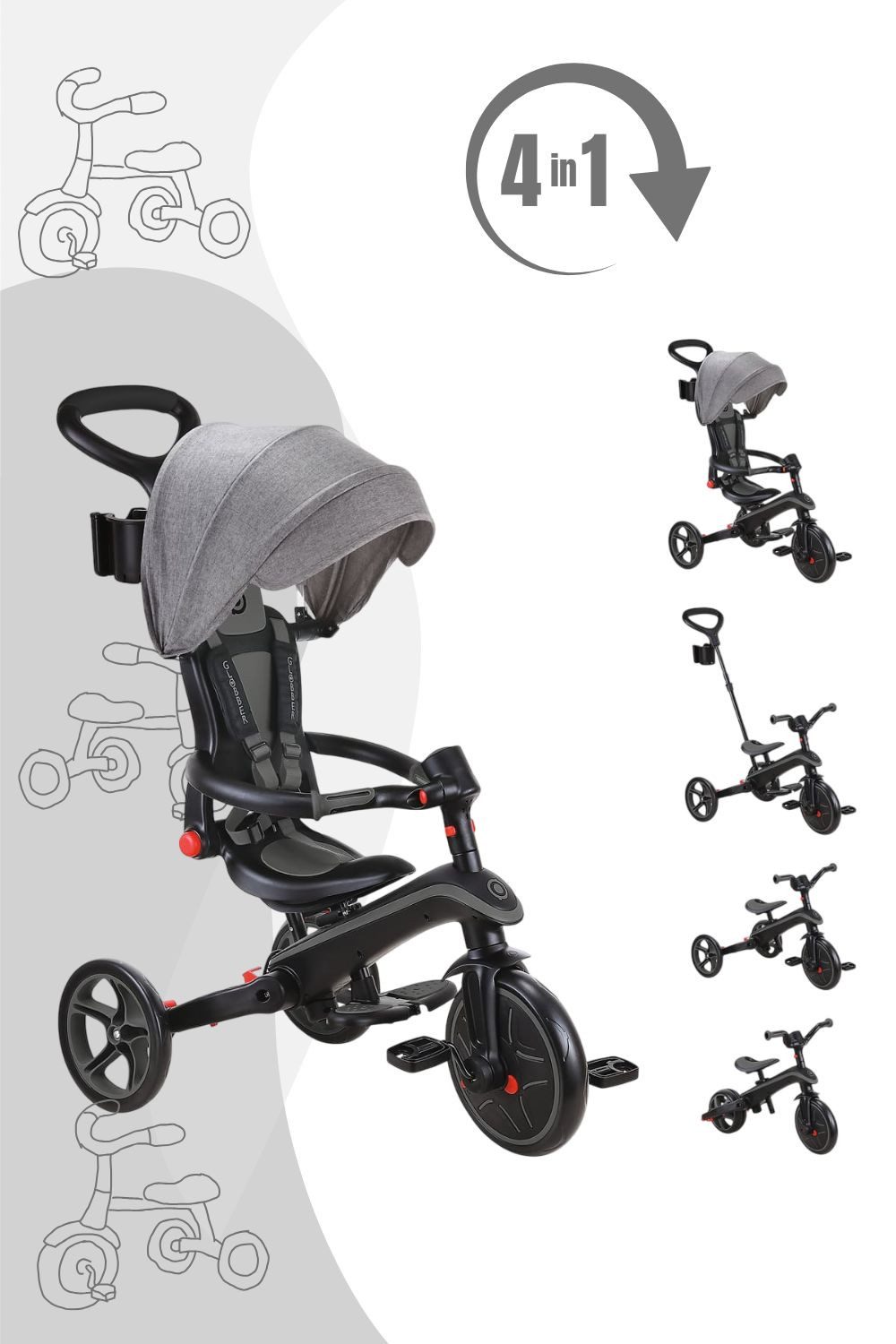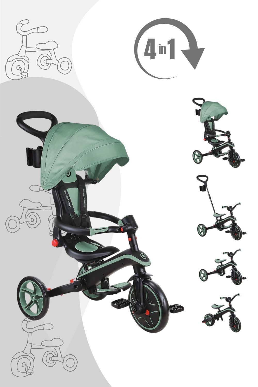 Der Globber Trike Explorer lässt sich mühelos in vier verschiedenen Modi nutzen: