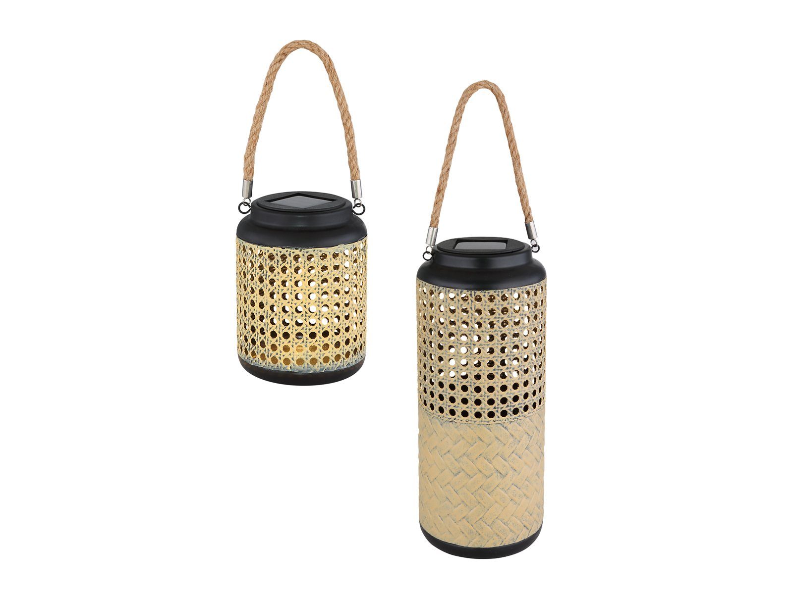 • 2er Set LED Solarlaternen aus Metall stehend oder hängend Rattanoptik Groß & Klein