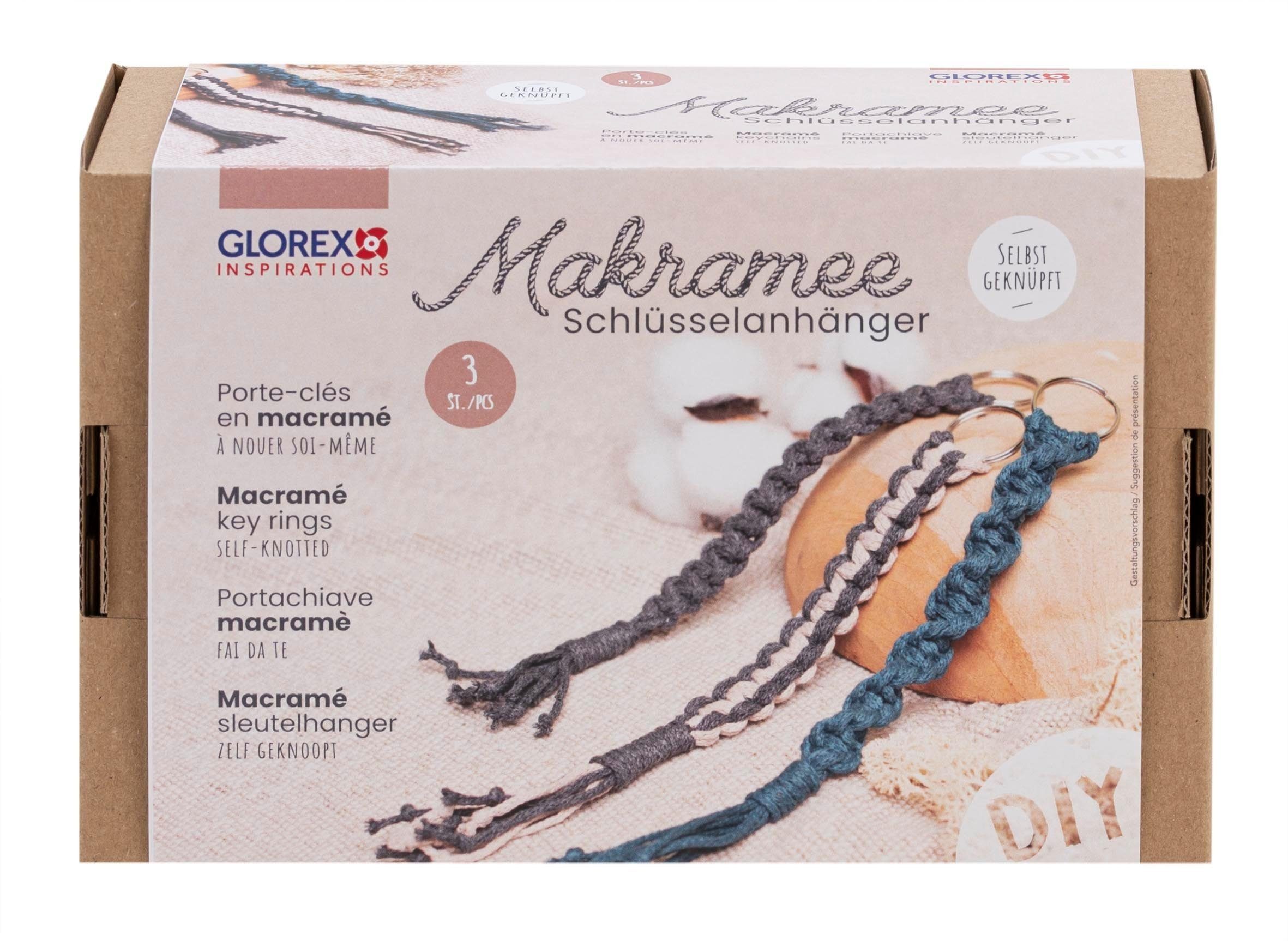 Du möchtest deine Schlüsselanhänger selbst gestalten? Mit dem Makramee-Set 'Schlüsselanhänger' kannst du gleich drei trendige Schlüsselanhänger herstellen. Dieses Komplett-Set beinhaltet alles, was du für die Herstellung der Schlüsselanhängern benötigst. Eine ausführliche Anleitung, die dir die verschiedenen Knüpfmuster erklärt ist ebenfalls enthalten. Das Kreativ-Set ist Made in EU und ist sowohl fertig als auch als Bastelset hervorragend geeignet.