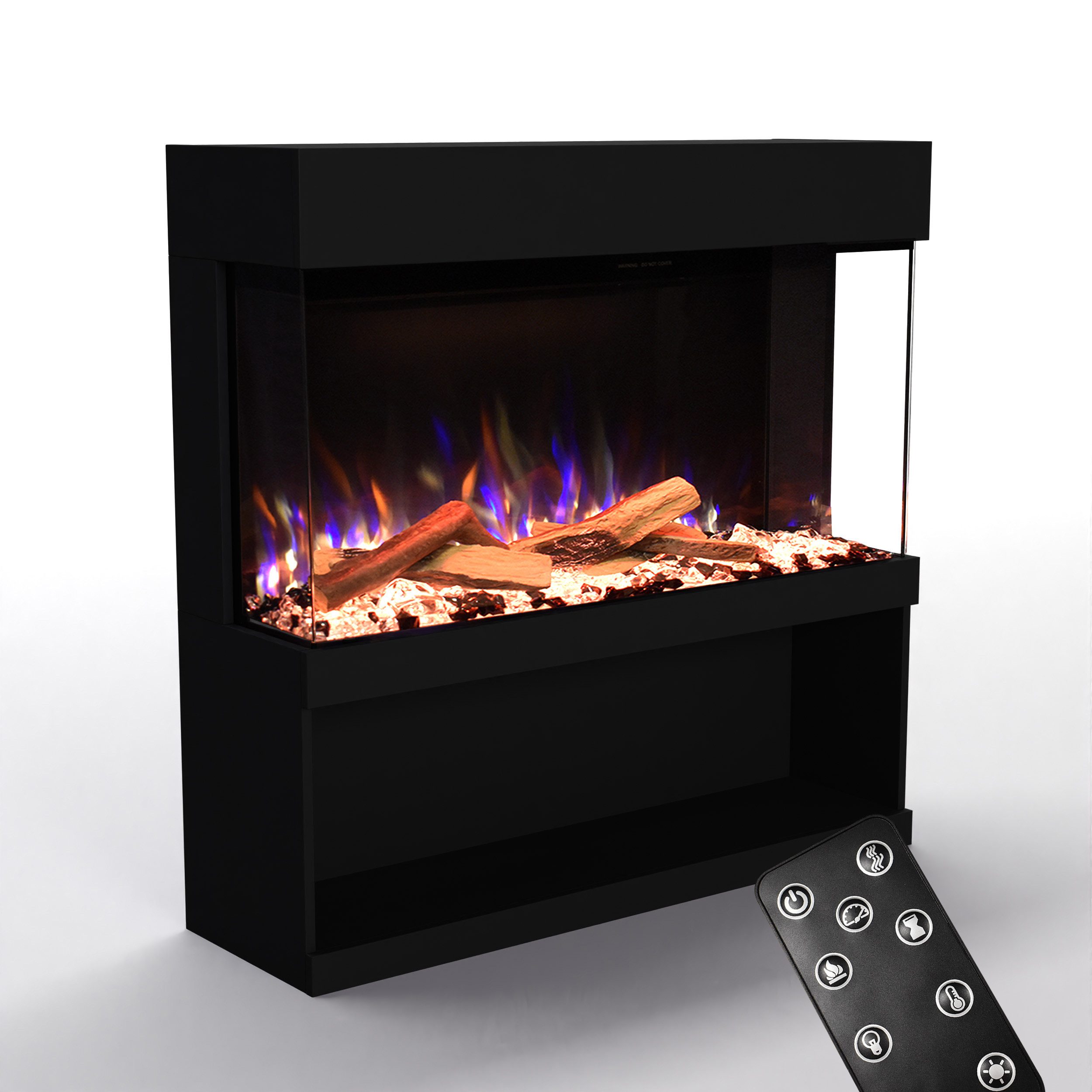 Ausstattung | Fernbedienung Bodenbeleuchtung Flammenfarben Heizleistung mit Thermostat Wunschtemperatur einstellbar Farbwechsler Holz- und Kristallsteindekoration Integrierter Knistereffekt LED Überlastungsschutz Sicherheitsabschaltung |