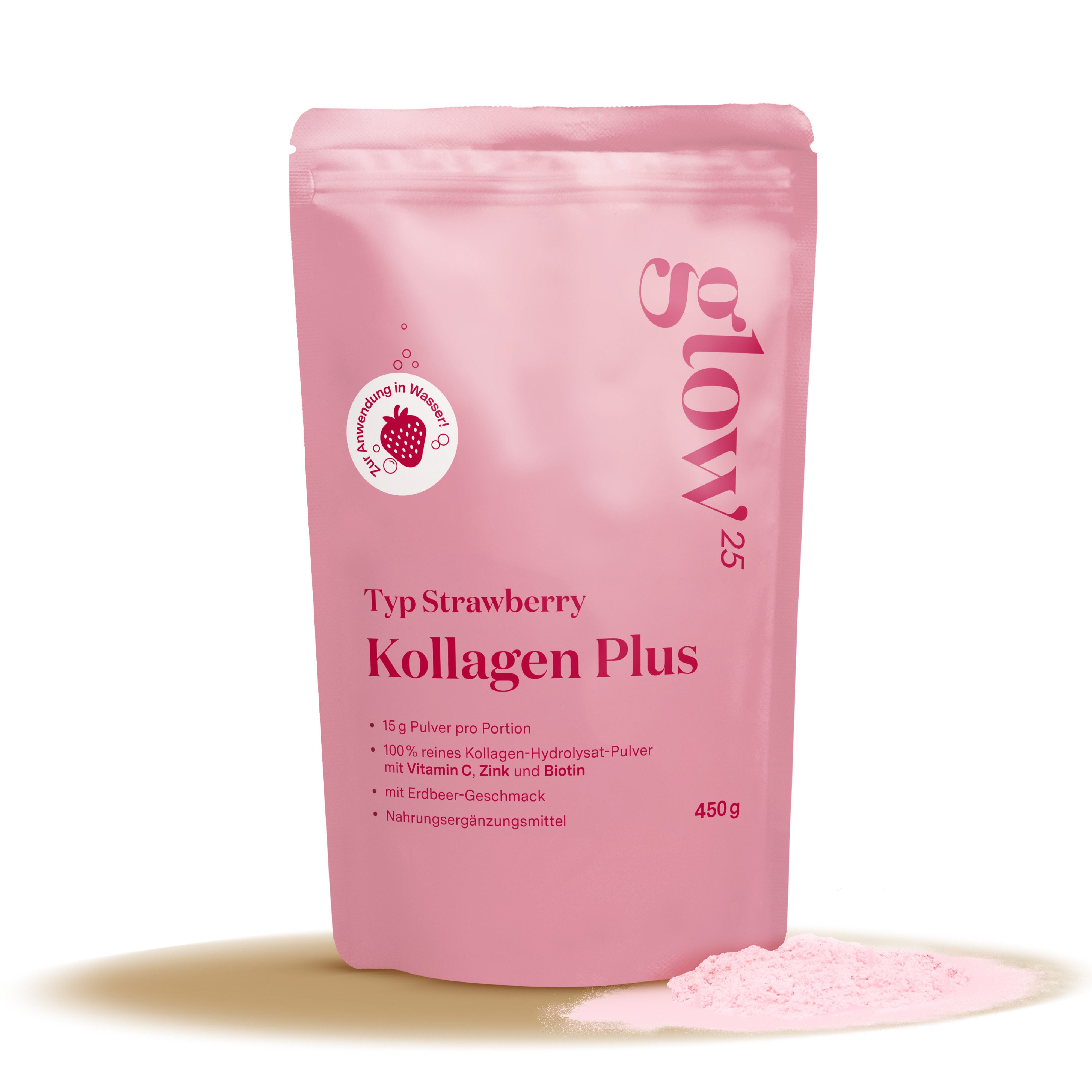 Zutaten | 89,2% Kollagen-Hydrolysat, natürliches Aroma, 3,0% Erdbeerpulver, Zitronenpulver, färbendes Lebensmittel: Rote Bete Saftpulver; Vitamin C, Zink-Gluconat, Biotin |