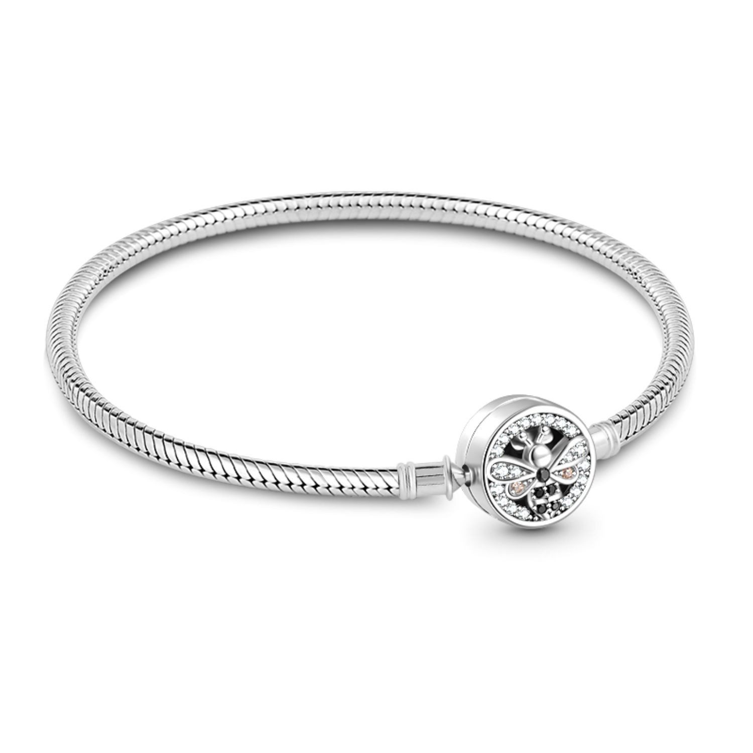 Gönnen Sie sich dieses Biene Basic Schlangenketten Armband aus 925 Sterlingsilber. Dieses Armband kann mit allen unseren Charms kombiniert werden. Füllen Sie es mit Ihren geliebten Charms und Sicherheitskette, und tragen Sie es allein für einen einfachen, unaufdringlichen Look.
