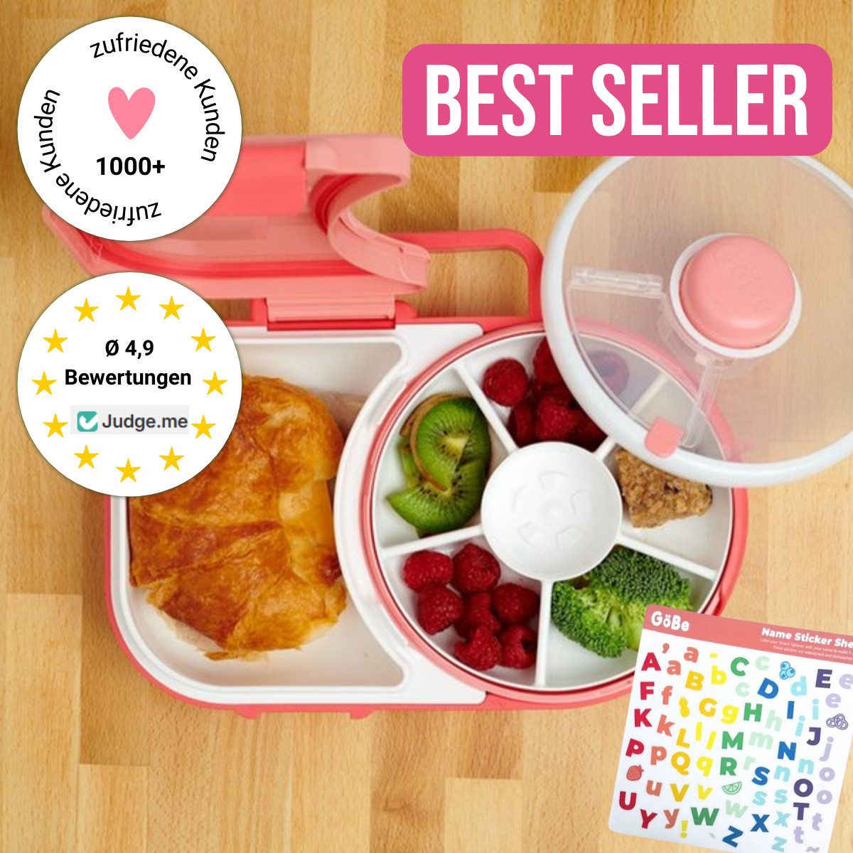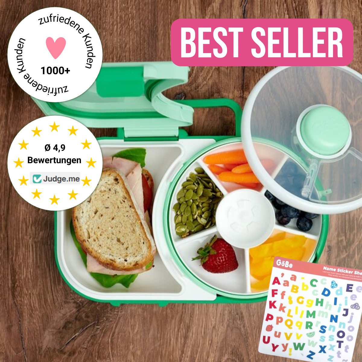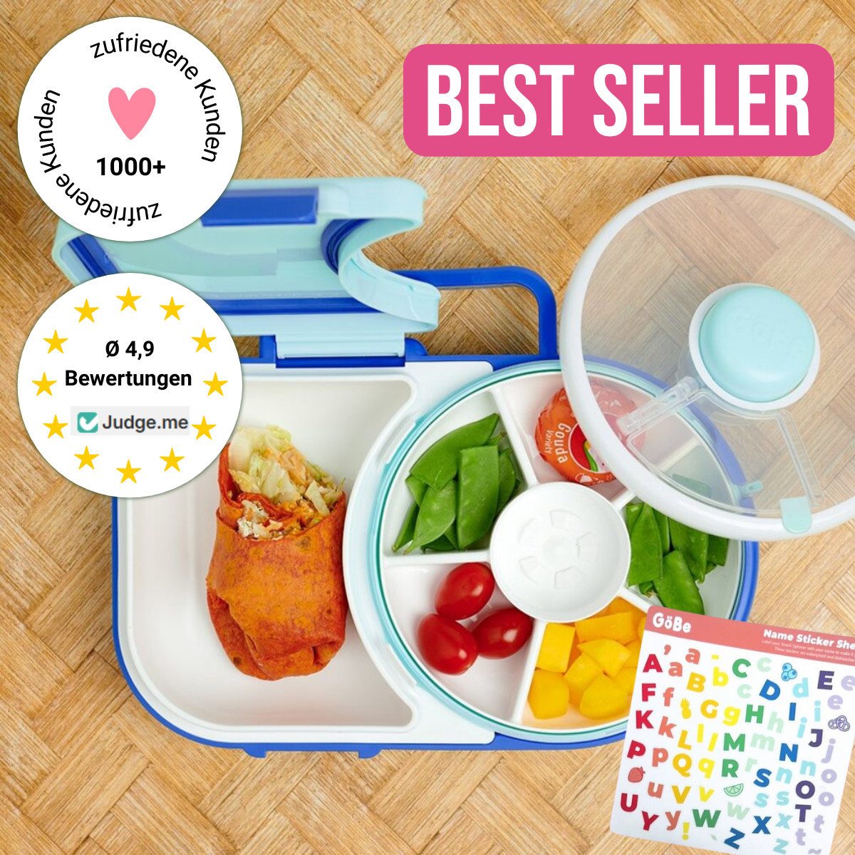 Durch die Kombination von richtiger Mahlzeit und Snacken ist die GoBe Lunchbox ideal für den Kindergarten, die Schule, Ausflüge und Urlaube geeignet! Darüber hinaus ist sie ein besonderes Geschenk für Einschulung, zum Geburtstag, zu Ostern oder zu Weihnachten. Sie ist etwas ganz Besonderes!