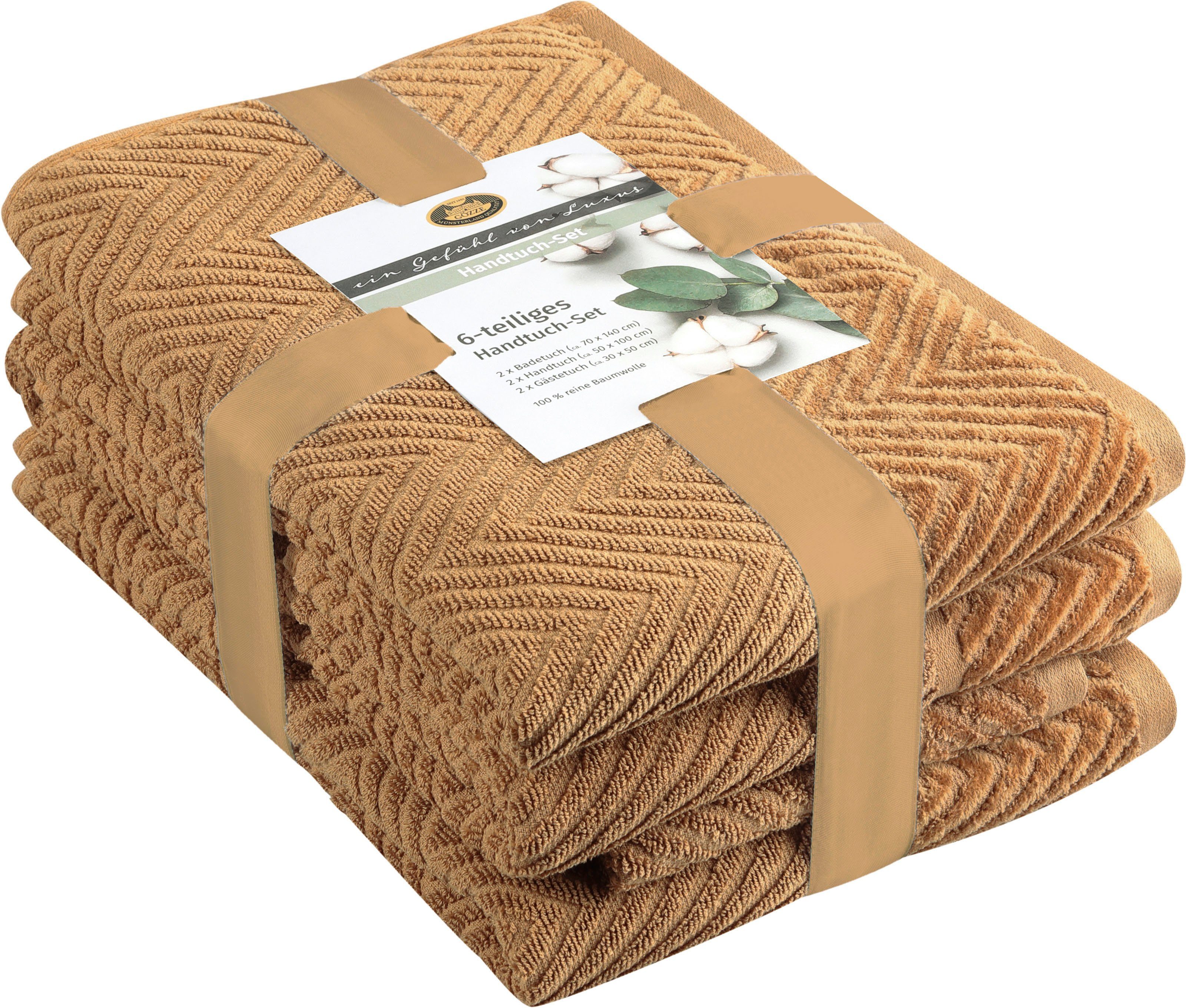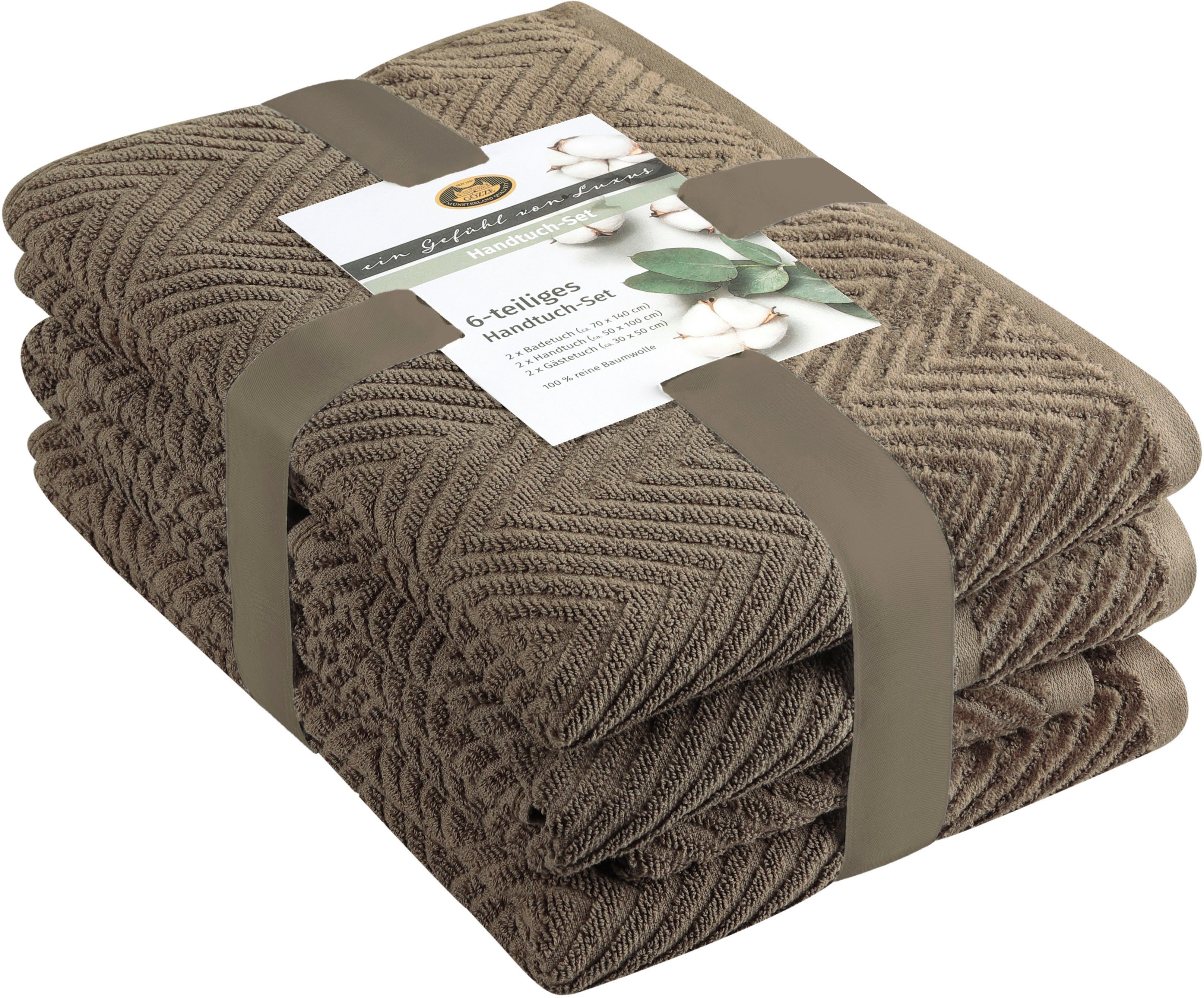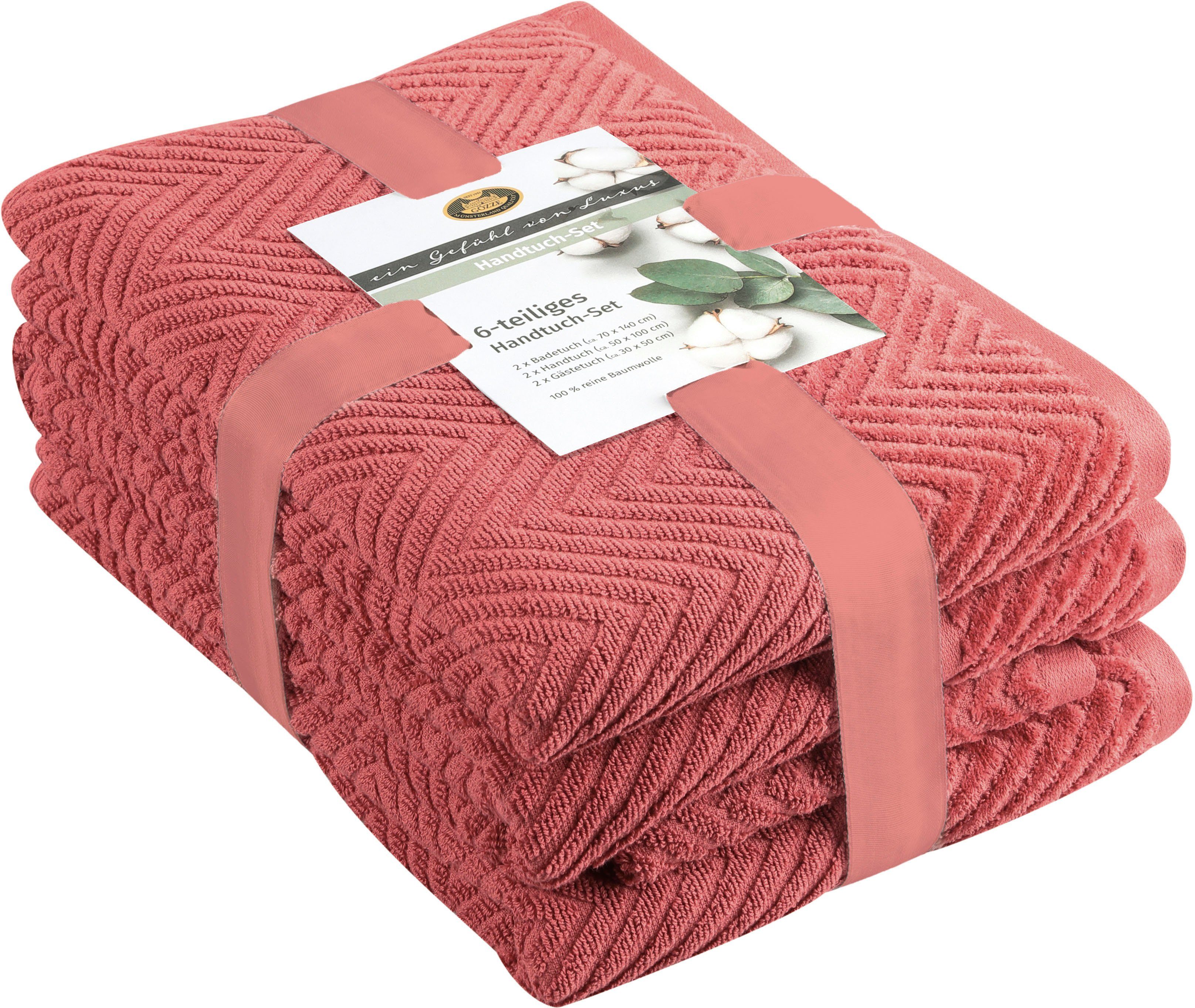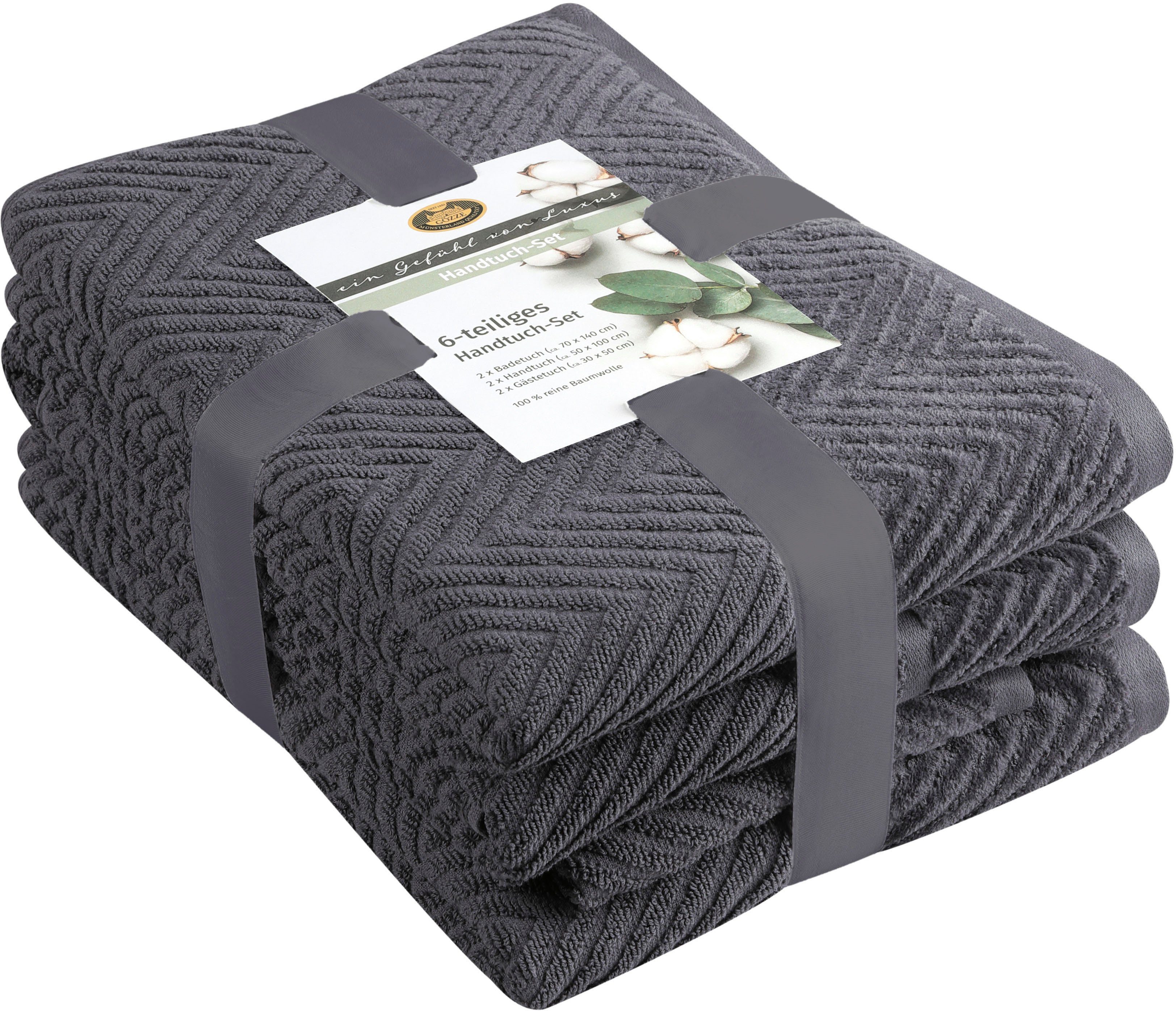 Set-Info | 2 Badetücher 70x140 cm 2 Gästetücher 30x50 cm 2 Handtücher 50x100 cm |