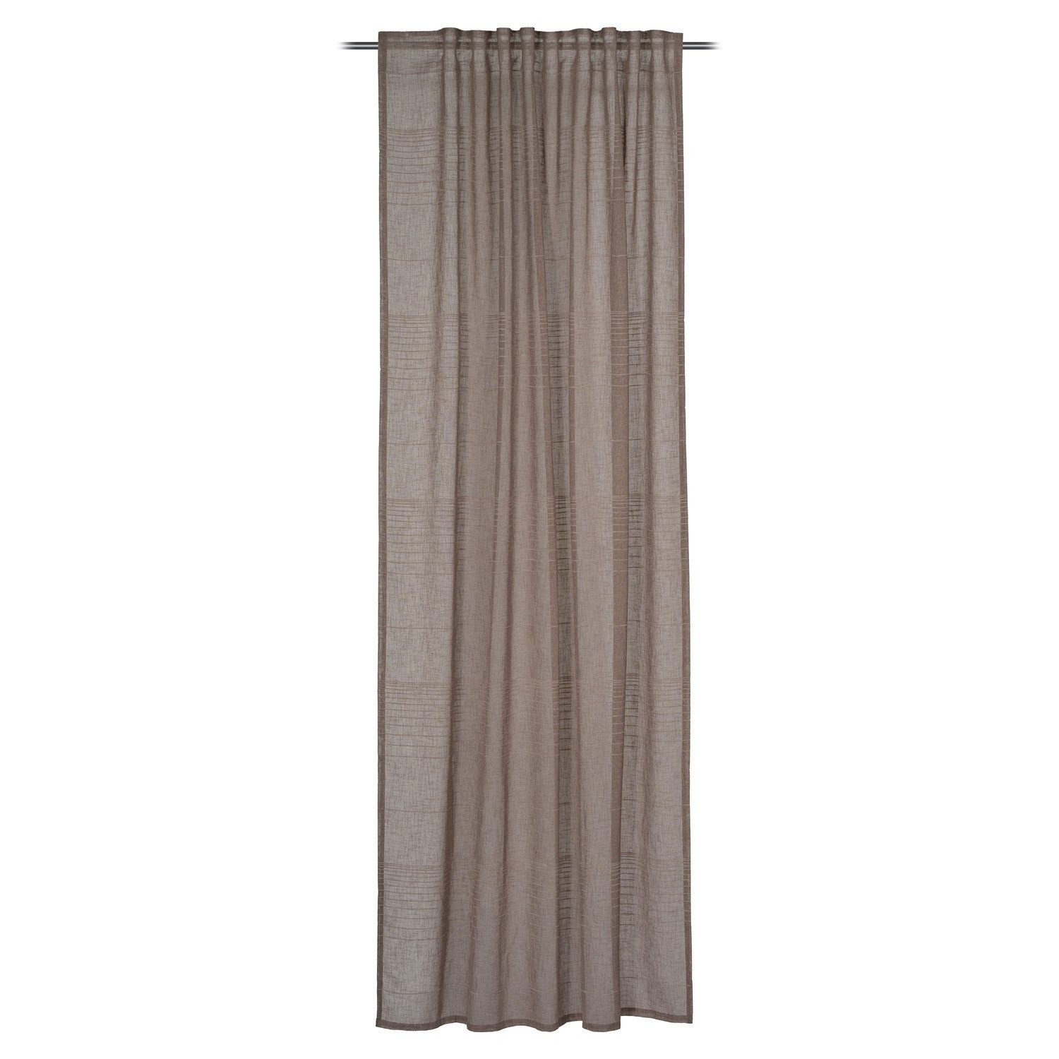 Der verdeckte Schlaufenschal DUNNY von Gözze präsentiert sich in Taupe mit einem Querstreifen in Leinenoptik. Mit einer Размер von 140 x 245 cm bietet er stilvolle Fensterdekoration. Die verdeckten Schlaufen ermöglichen eine einfache Anbringung. Ein elegantes und pflegeleichtes Accessoire für jeden Raum.