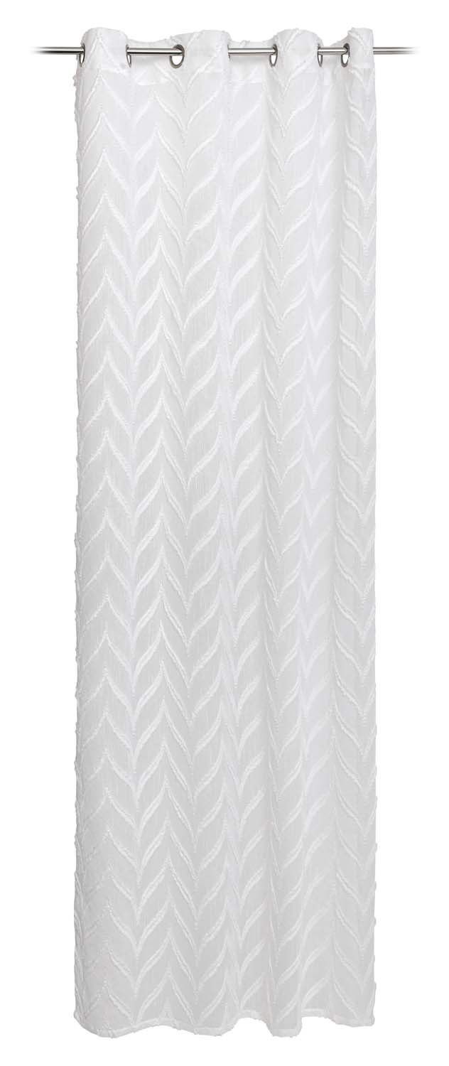 Der Ösenschal ROMBO von Gözze in Weiß bietet mit einer Breite von 140 cm viel Sichtschutz an Fenstern. Der Ösenvorhang aus Polyester ist daher ideal für Fenster in Schlafzimmer, Küche und vielen anderen Räumen.