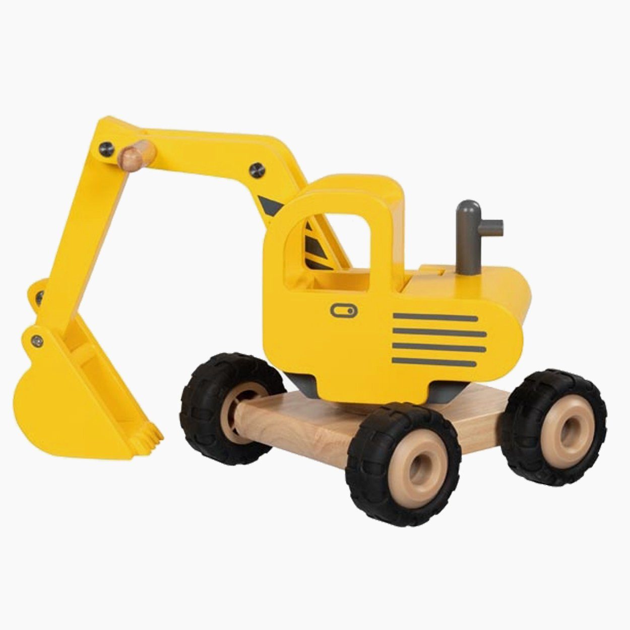 Das massive Holz, aus dem der Bagger gefertigt ist, sorgt für Standfestigkeit und Belastbarkeit. Durch seine durchdachte Bauweise hält er selbst intensivem Spiel stand – im Sandkasten, auf dem Teppich oder draußen auf der Terrasse.