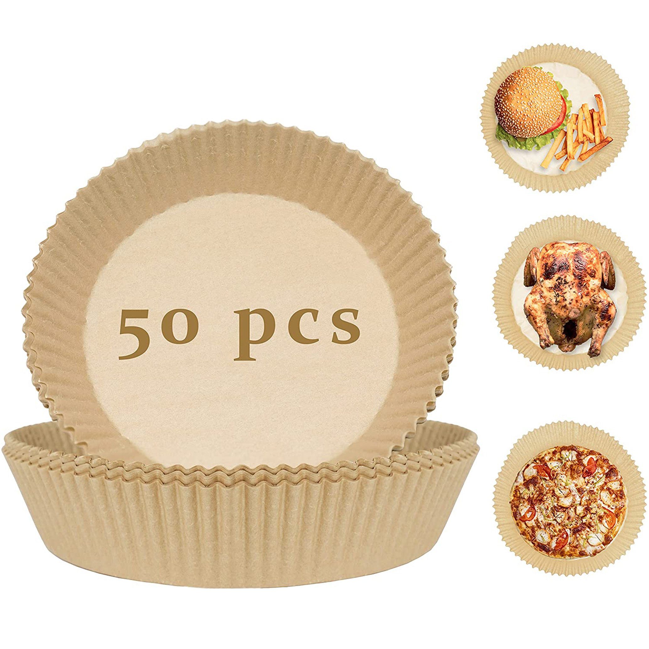 Material: silikonbeschichtetes Holz-Zellstoffpapier. Farbe: Hellbraun. Form: rund. Innendurchmesser: 16 cm. Außendurchmesser: 20 cm. Höhe: 4,5 cm. Geeignete Fritteuse: 3-4L, Geeignete Fritteuse (aufgeklappt): 4-5L. - Leicht zu reinigen: Wenn Sie nach jedem Kochen alles Öl, Grillschale und umständliche Korb reinigen müssen, sind Luftfritteusen-Einsätze ein Spiel-Wechsler. Pergamentpapier Blätter können die Seite von schützen und verhindern, dass Lebensmittel daran haften. - Sicher & Gesund: Pergamentpapier ist ungiftig und hat keine Fluoreszenz. Luftfritteuse Einweg-Papiereinsatz ist antihaftbeschichtet, wasserdicht und öldicht. Es kann Temperaturen von bis zu 220 °C standhalten und hat keinen Einfluss auf den Geschmack von Lebensmitteln. - Praktisch & handlich: Air Fryer Liner ist einfach zu bedienen. Sie müssen nicht reißen, falten, schneiden oder biegen. Nehmen Sie einfach einen heraus und legen Sie ihn in Ihre Luftfritteuse oder Mikrowelle. Einweg-Fritteusen-Einlagen haben einen erhöhten Rand von 4,5 cm, schützen die Seite der Fritteusen und verhindern, dass Lebensmittel daran haften. - Vielseitig verwendbar: Das Fritteusenpapier kann zum Servieren von Lebensmitteln, Dampfgarer, Bratpfanne, Mikrowelle, Braten, Fritteuse, Herd usw. verwendet werden. Air Fryer Papiereinlagen sind geeignet zum Backen, Camping, Sommerparty, Grillen und so weiter. - Warnung: Air-Fitteusen-Pergamentpapier-Einlagen sollten nicht im Vorheizmodus hinzugefügt werden. Luftfritteusen-Entsorgungsfolie sollte hinzugefügt werden, wenn Sie Lebensmittel hinzufügen. Achten Sie darauf, dass das Papier nicht mit dem Heizrohr in Berührung kommt, die Temperatur des Heizrohrs ist viel höher als die hitzebeständige Temperatur des Papiers.