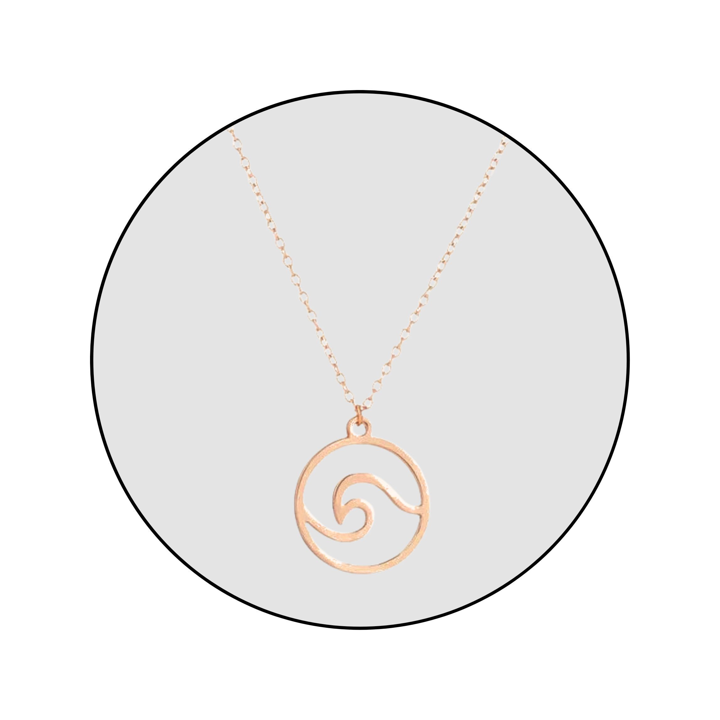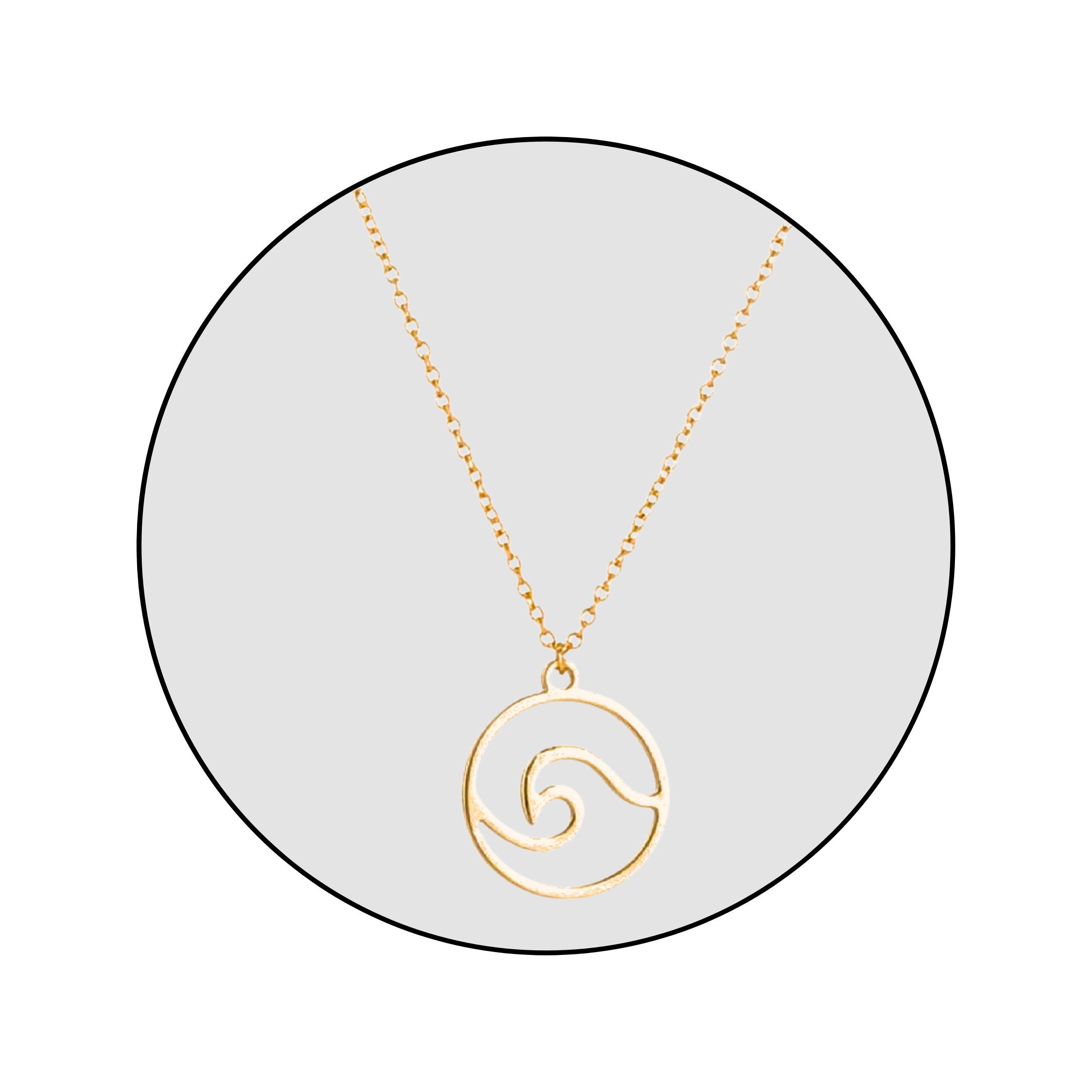Design: Minimalistischer, runder Anhänger mit stilisierter Welle