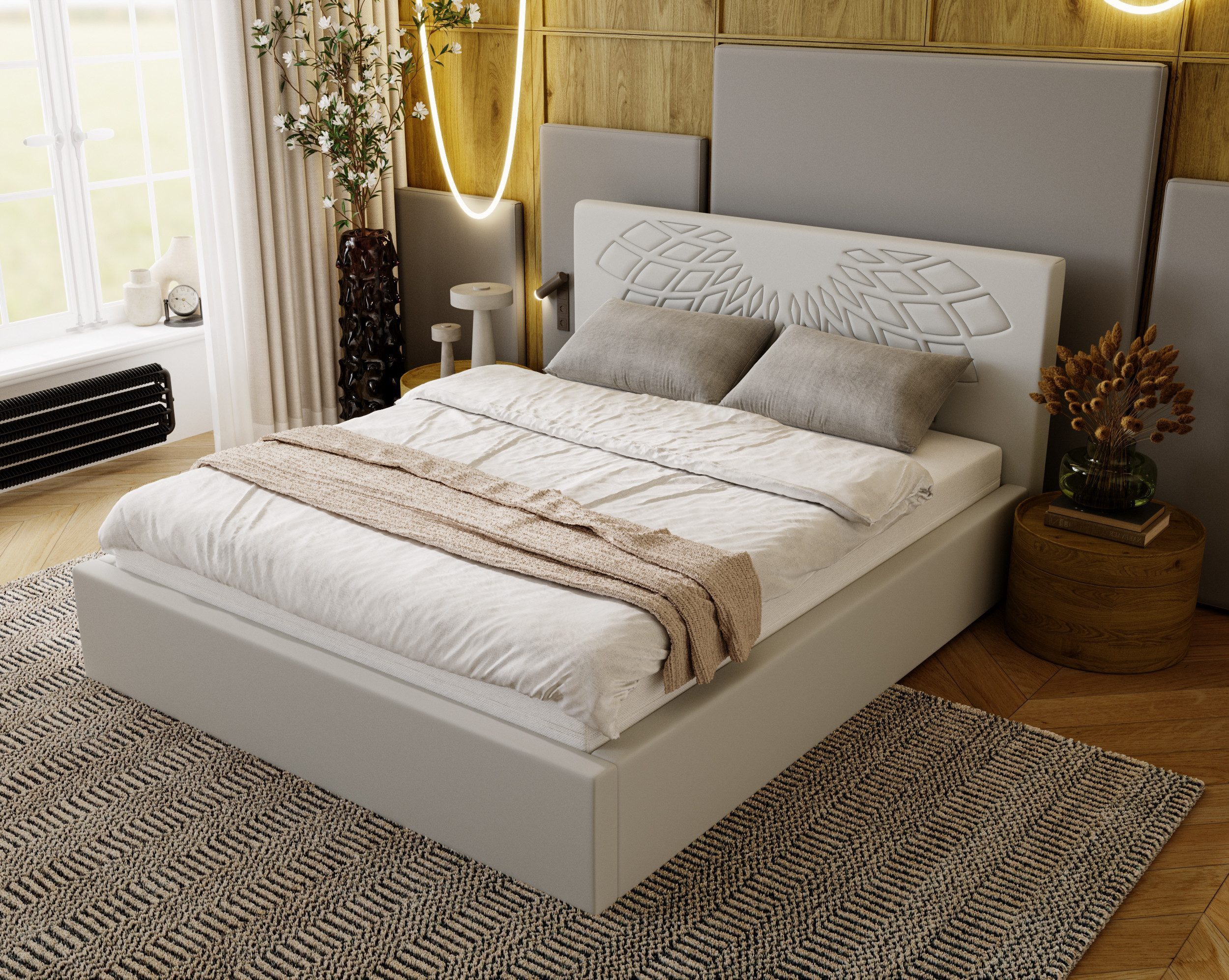 Das LOTUS Bett ist in vier Breiten erhältlich: 140, 160, 180 und 200 cm – jeweils mit 200 cm Liegefläche. Farblich stehen Beige, Hellgrau, Lavendelfarben und Dunkelbeige zur Wahl – ideal für moderne wie klassische Schlafzimmer.
