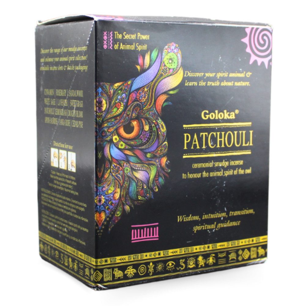 Goloka Patchouli, ein Duft, der den suchenden Geist, der sich auf die Entdeckungsreise in die Tiefe der Selbsterkenntnis begibt, anregt und stimuliert. Ein angenehmer starker Duft, der klärend und befreiend wirken soll.
