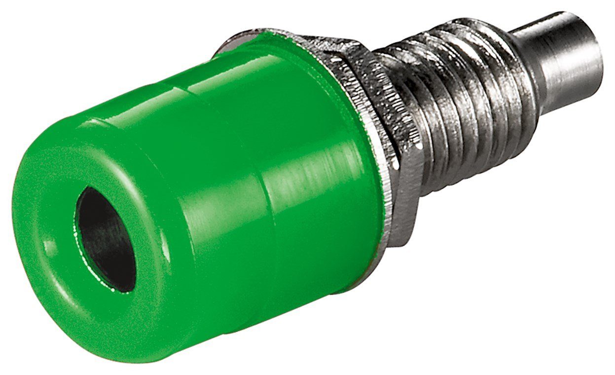 Bananenbuchse mit Gewinde grün 4 mm, mit 2 Muttern