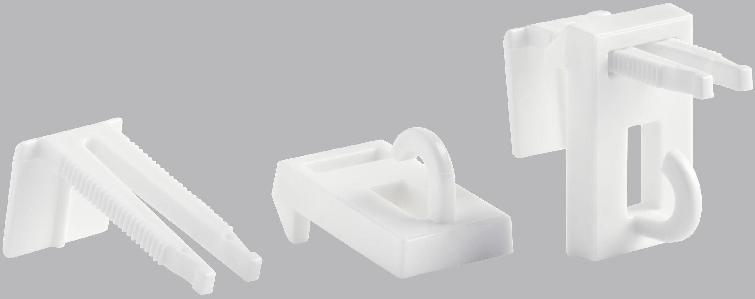 Den komfortablen Klemmhalter können Sie einfach auf den Fensterrahmen aufstecken - ohne Kleben oder Bohren. Er ist für alle Holz- und Kunststoff-Fenster verwendbar, dabei bleibt die Bedienung des Fensters vollständig erhalten. Durch seine bewährte Klemmtechnik hält er sicher auf dem Rahmen und passt er sich jeder Rahmenstärke an. Ideal für Mietwohnungen. Der Haken eignet sich auch wunderbar für die Aufhängung von Deko-Artikeln - einfach mit Schnur oder Öse anhängen - fertig. . Technische Daten: Set à 2 Stück. Setzen Sie den Klemmträger auf den Fensterrahmen und stellen ihn auf die Rahmenstärke ein: Der Träger soll gut klemmen und darf nicht rutschen. Dann hängen Sie das Bambus-Rollo ein. Eine Montageanleitung liegt jedem Träger bei. Bei Breiten über 100 cm empfehlen wir zusätzliche Träger für sicheren Halt. Design: Glatte Oberfläche. Unifarben. Material: weißer Kunststoff. Pflegehinweis: pflegeleicht. Mit einem Staubwedel abstauben oder mit einem feuchtem Tuch vorsichtig abwischen.