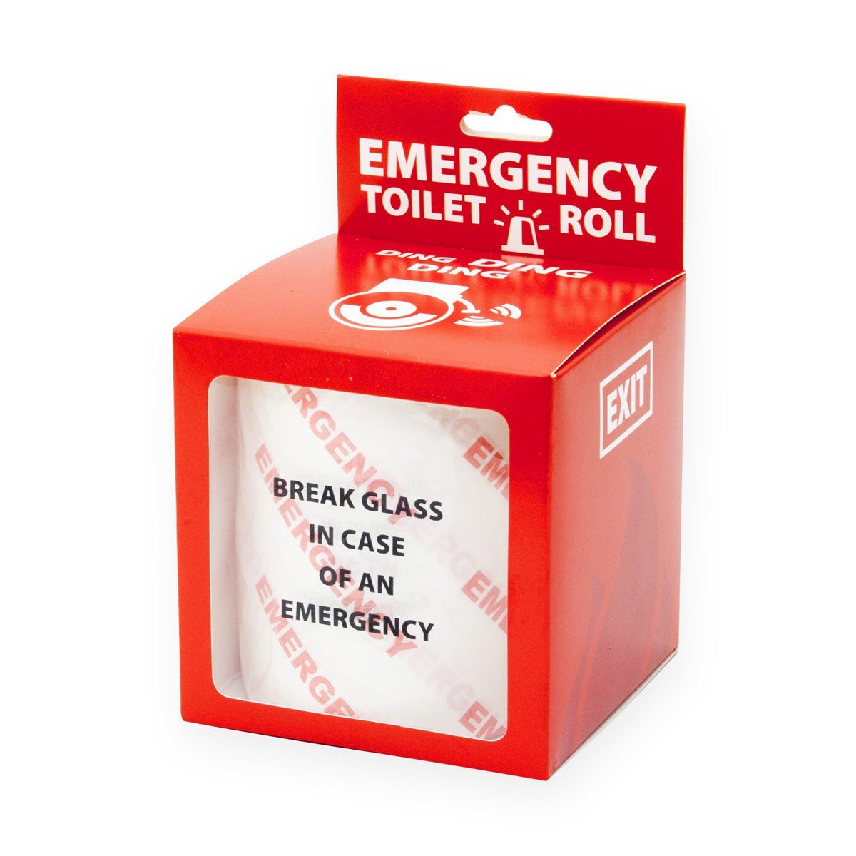 Nutzungswidrige Abwicklung wird durch die Glasscheibe verhindert, die wie bei jedem Notfall in Haus und Hof erst einmal eigeschlagen werden muss. Hier splittert es also nur in dringenden Fällen und nicht bei Auffüll-Faulheit. Mit dem Klopapier Emergency Toilettenpapier kann man sich übrigens nicht, wie der Name vielleicht suggeriert, aus diversen Notfällen retten: Es ist weder zum Abseilen aus Gefängnissen geeignet noch lassen sich Gangster damit fesseln. Lassen Sie es zu keinen Notfall mehr kommen mit dem spektakulären Emergency Klopapier - in schicker Geschenkverpackung ein super Geschenk!