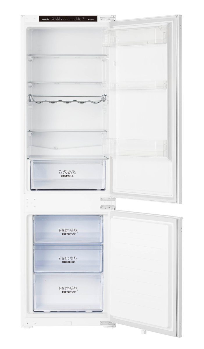 Die »NRKI418EP1« ist eine integrierbare Einbaukühlgefrierkombination von GORENJE. Bei einem Gefriervolumen von 63 l und Kühlvolumen von 183 l betragen die Maße des Modells 54 x 177,2 x 54 cm (B/H/T). Es sind drei Gefrierschubladen zum Verstauen des Einkaufs integriert. Auf dem innen installierten Display kann die genaue Temperatur im Gerät abgelesen werden. Die »NRKI418EP1« von GORENJE ist eine Einbaukühlgefrierkombination, die mit ihren Features überzeugt und ausreichend Platz für Nahrungsmittel aller Art bietet.