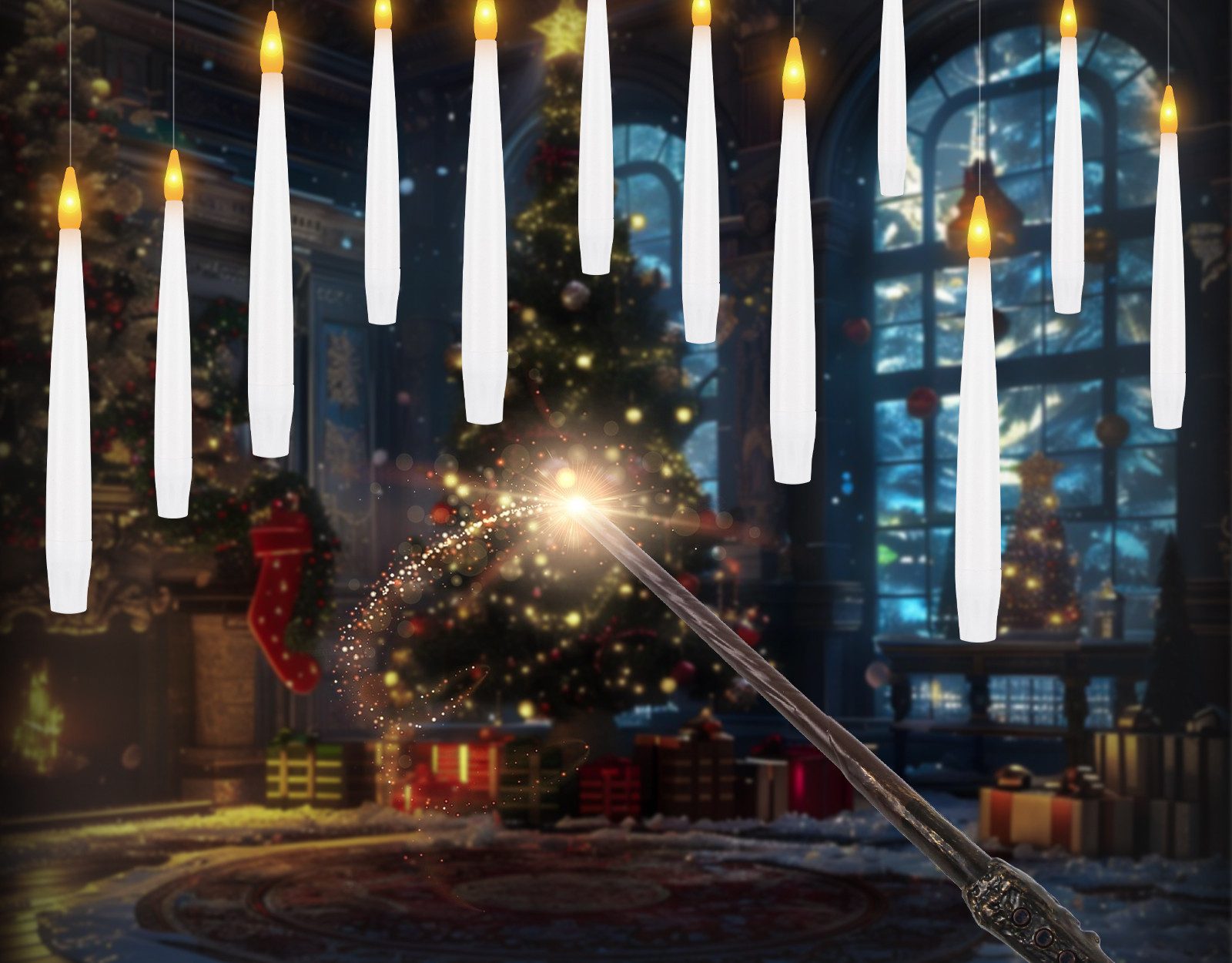 (Weihnachtsbaumkerzen weihnachtsdeko halloween kerzen), LED Schwebende Timer Zauber Fliegende Kerzen Weihnachten