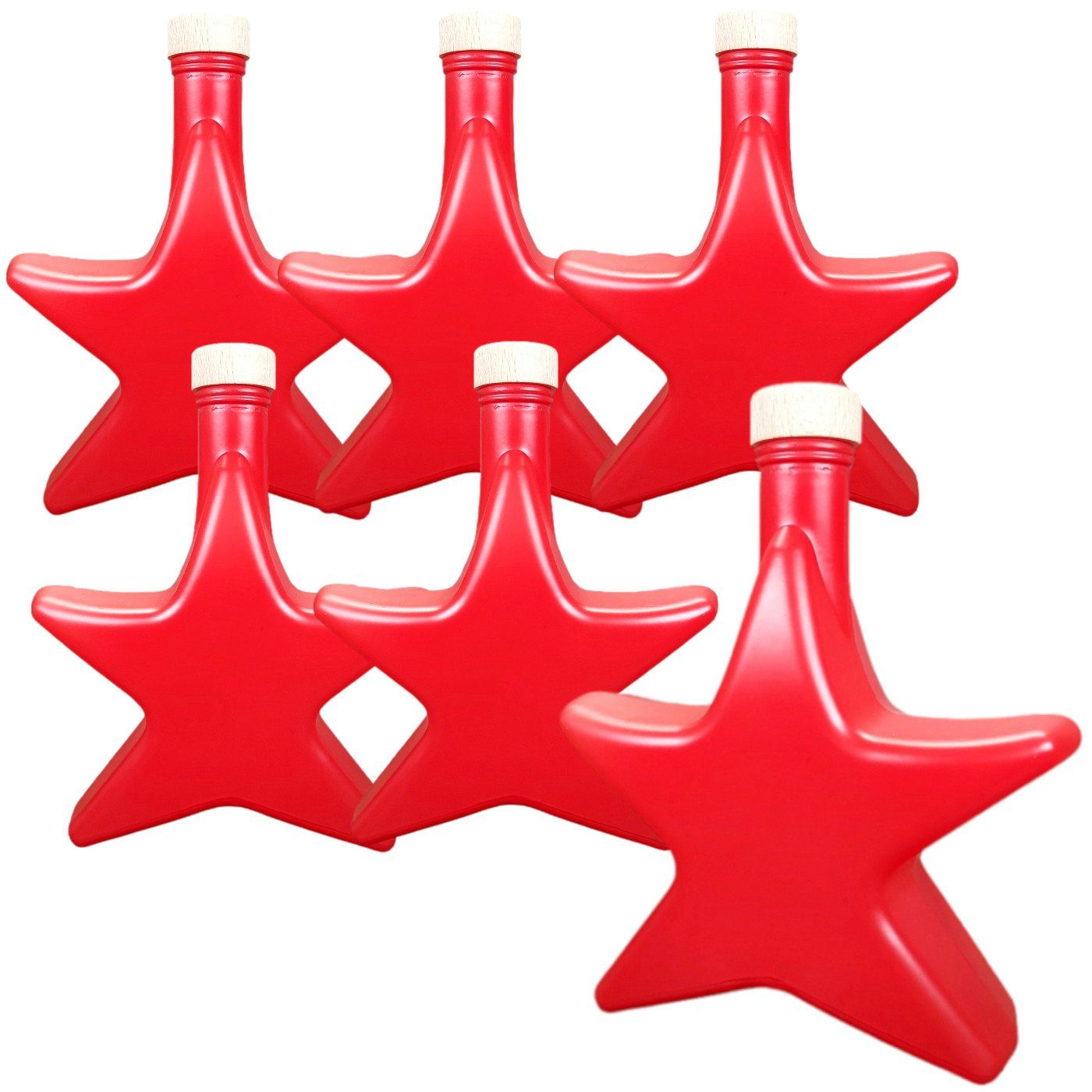 WEIHNACHTSFLASCHE: Die Glasflaschen aus rot gefärbtem Klarglas haben eine schöne Sternform und verfügen über einen Holzgriff-Korken zum einfachen und sicheren Verschließen!