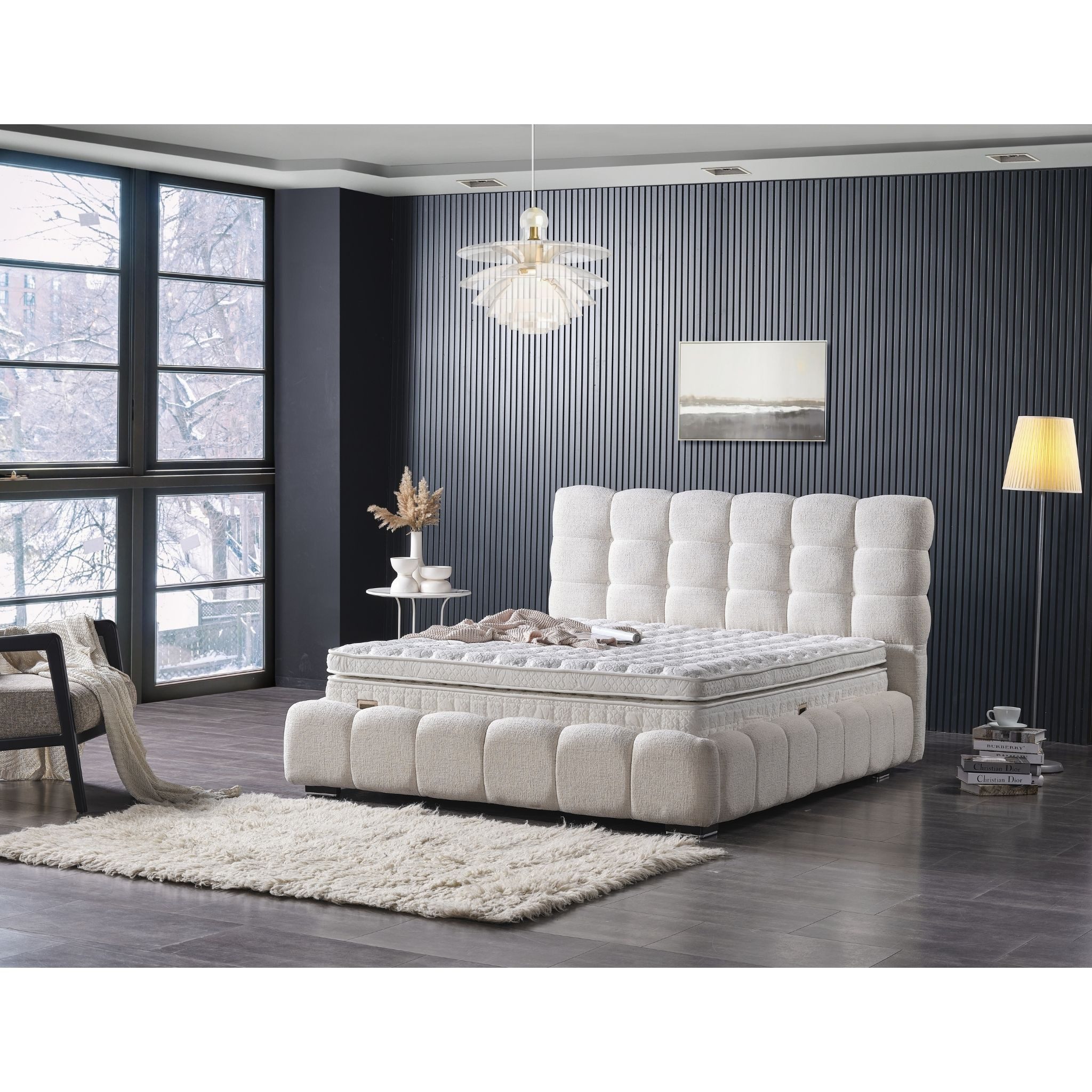 Manchmal suchen wir mehr als nur ein Bett; einen traumhaften Schlaf, Leichtigkeit und Komfort. Das Bett, das genau für diese Bedürfnisse entworfen wurde, bietet Ihnen ein Schlafgefühl wie auf Wolken. Sein spezielles Design erinnert an einen Traum. Seine weiche und leichte Struktur umhüllt sanft jeden Punkt Ihres Körpers, als würden Sie auf Wolken gleiten. Dieses besondere Bett lässt Sie das Gewicht im Schlaf vergessen und entführt Sie in eine Traumwelt. Mit diesem Bett können Sie Nacht für Nacht Leichtigkeit, Komfort und ein perfektes Schlafgefühl genießen. Sie sind zu einem Schlaf über den Wolken eingeladen.