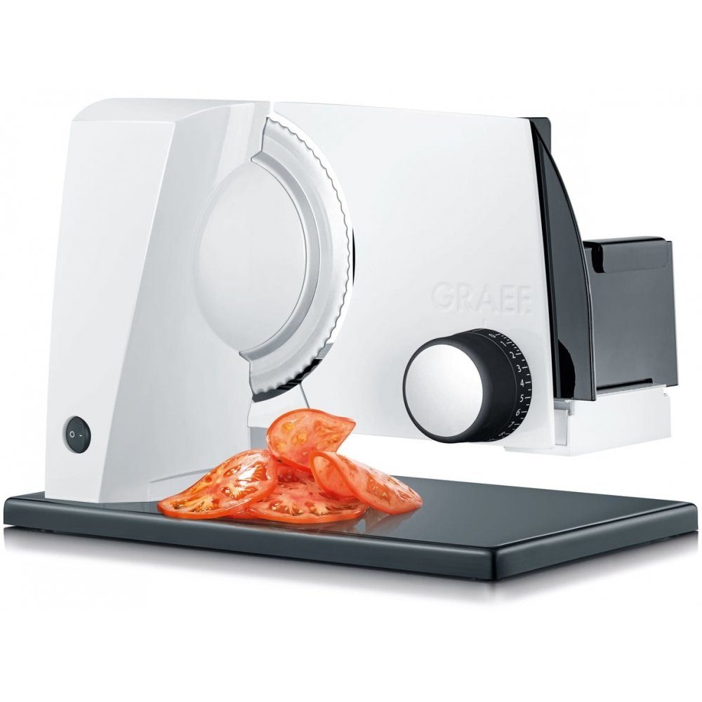 Впередe Vorteile | Dank des kompakten Designs findet der S11000 in jeder Küche Platz. Er eignet sich für junge Familien ebenso wie für Studenten – aber letztlich für jeden, der Wert auf frische, gesunde Ernährung legt. Die Metallmaschine überzeugt vor allem durch ihre Robustheit. Ihr energiesparender Eco Power Motion arbeitet zugleich stark und leise mit 45 Watt und einer Spitzenschneidleistung von 170 Watt. Der separat erhältliche MiniSlice Aufsatz ist die optimale Ergänzung zum Sliced Kitchen Всеsschneider: Gemüse, Obst oder Salami, sogar kleine Kartoffeln oder Pilze werden in hauchdünne, ovale Scheibe geschnitten –für optimale Garzeiten beim Kochen. Edelstahl-Wellenschliffmesser mit Safety-Verschluss für schnellen und sicheren Messerwechsel: Ideal für Bgrau, Wurst oder Käse; Messerabdeckplatte für optimale Schneidergebnisse; Stabiler und leichtgängiger Schlitten mit Kindersicherung. Mit dem großen, leicht laufenden Schlitten können Nutzer das Schneidgut exakt an das 170 mm breite, rostfreie Edelstahlmesser mit Wellenschliff heranführen. Das Gerät lässt sich stufenlos auf Schnittstärken von bis zu 2 cm einstellen. Nicht zuletzt glänzt der Graef Всеsschneider S11000 aus der SKS 100-Serie durch seine zeitlose Form. Zur Funktionalität kommt der Sicherheitsaspekt. Ein spezieller Safety-Verschluss ermöglicht es, das Messer zur Reinigung schnell und gefahrlos abzunehmen. Zudem lässt sich der Schlitten durch die Kindersicherung vor dem Messer verriegeln. |