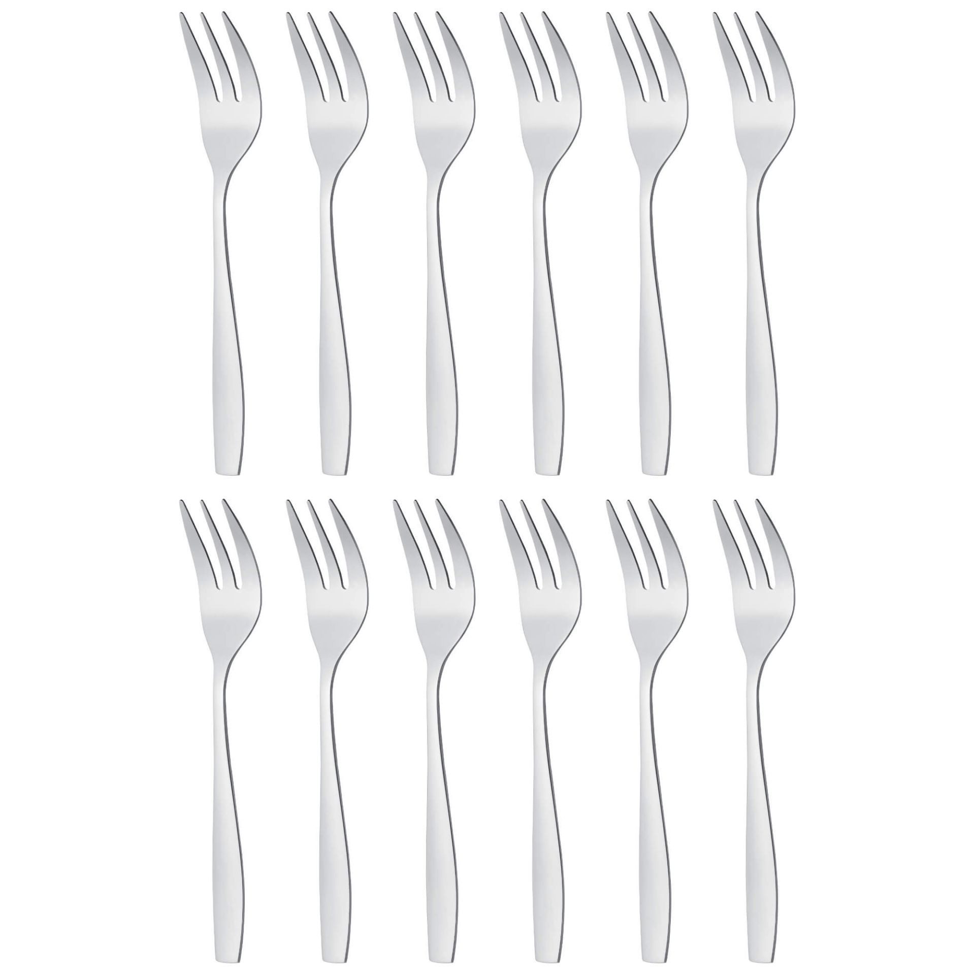 12 hochglanzpolierte Kuchengabeln aus nickelfreiem Edelstahl im schlichten Design. Nachkaufgarantie: Mindestens 5 Jahre lang erweiterbar mit Menübesteck und Servierbestecken aus der beliebten GRÄWE Besteckserie KÖNIGSTEIN.