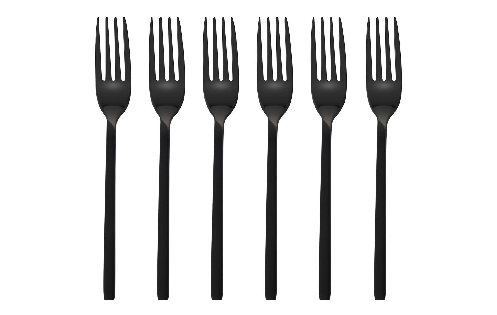 Das Besteck unserer Serie LISSABON fällt aufgrund seiner schwarzen Titanbeschichtung sofort ins Auge.