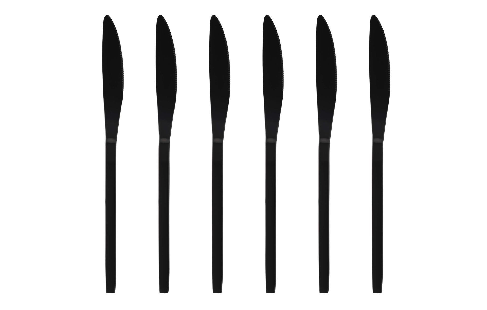 Edelstahl 18/10 Chromnickelstahl Messer aus Edelstahl 18/0 Chromstahl Schwarze Titanbeschichtung Spülmaschinengeeignet Elegantes und schlichtes Design