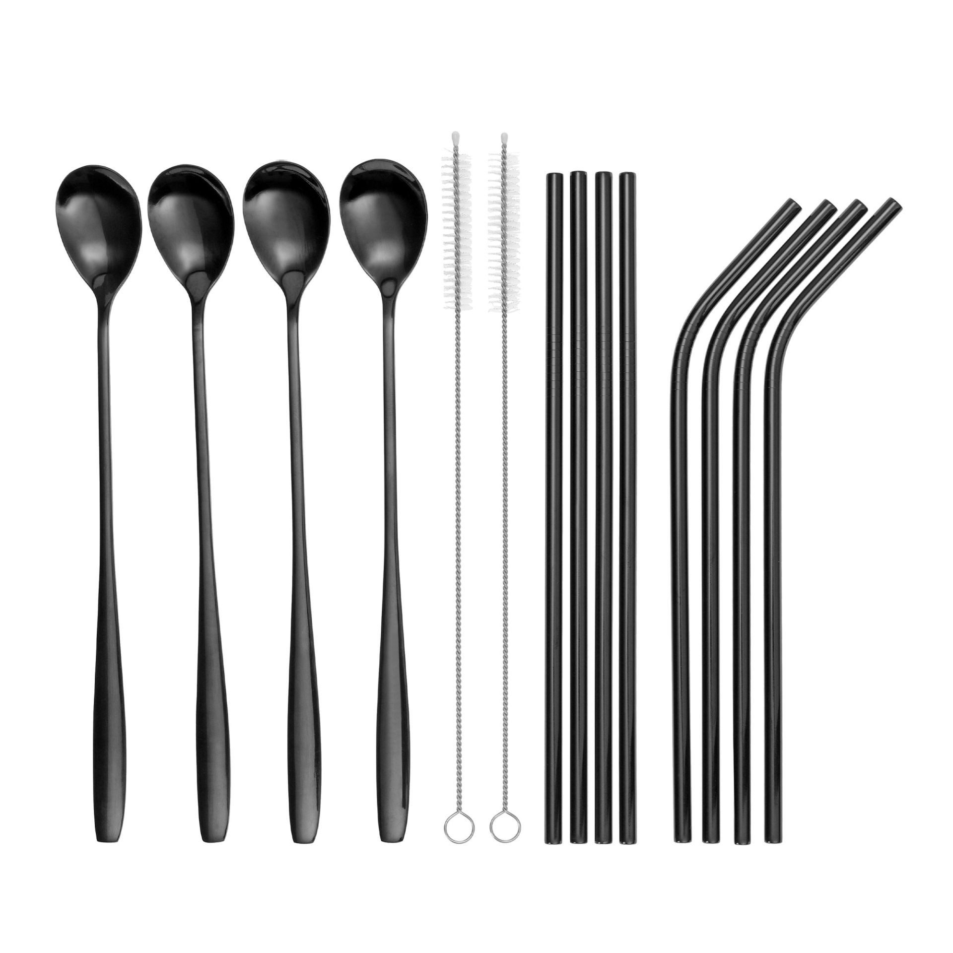 GRÄWE Trinkhalme + Longdrinklöffel, Edelstahl 14-teilig, schwarz