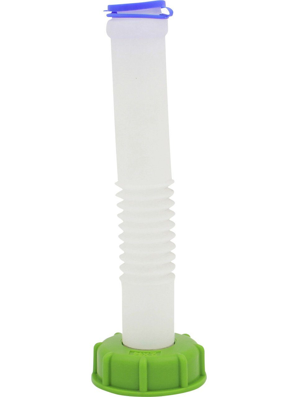 IBC Adapter DN50 mit flexiblem Ausgießer - Flexibler Ausgießer (ca. 20 cm) mit DN50 / 2 Zoll Anschluss zum Tank. Ideal zur Befüllung von Gießkannen, Kanistern, Eimern usw. Nutzen Sie den IBC Adapter auch, um bei platzbedingten Einschränkungen eine bequeme Entnahmestelle für Ihren IBC Wassertank zu schaffen. Der bewegliche und nahezu in alle Richtungen verstellbare Adapter ist mit einem Standardanschluss (2 Zoll / S60x6) für IBC Container versehen. Gleichermaßen stabil und passgenau lässt sich die Verbindung zwischen Adapter und Tank dank des S60x6 Grobgewindes herstellen. Auch das Material lässt keine Wünsche offen - durch den stabilen PE Kunststoff besitzt dieser Adapter eine lange Lebensdauer.