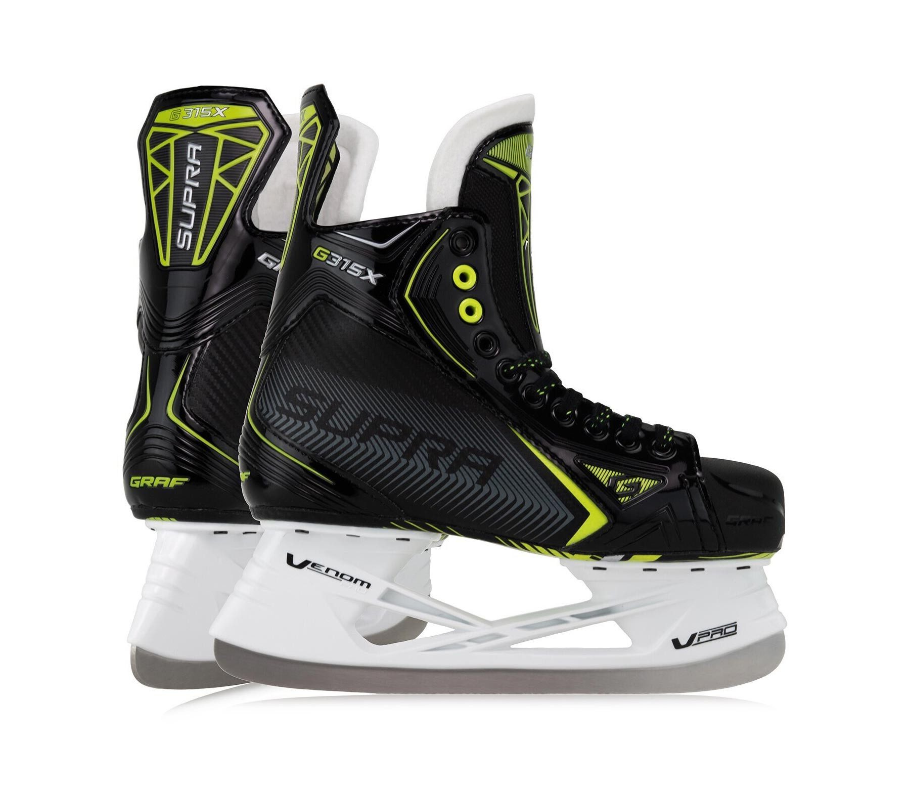 Der G315X überträgt die Kraft des Beins mit den neu entwickelten Venom Pro Kufen auf das Eis. Venom Pro zeichnet sich durch einen neu gestalteten Angriffswinkel am Schuh und eine verbesserte Form der Kufe aus, um den Kontakt zum Eis bei jedem einzelnen Schritt zu maximieren