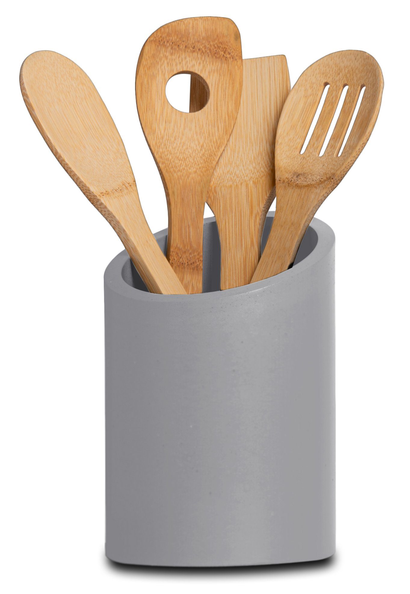 Geschenk - Dieser handgefertigte Löffelhalter aus Beton mit seinen Kochlöffeln aus Bambus eignet sich perfekt als hochwertiges Geschenk für eine neue Küche.