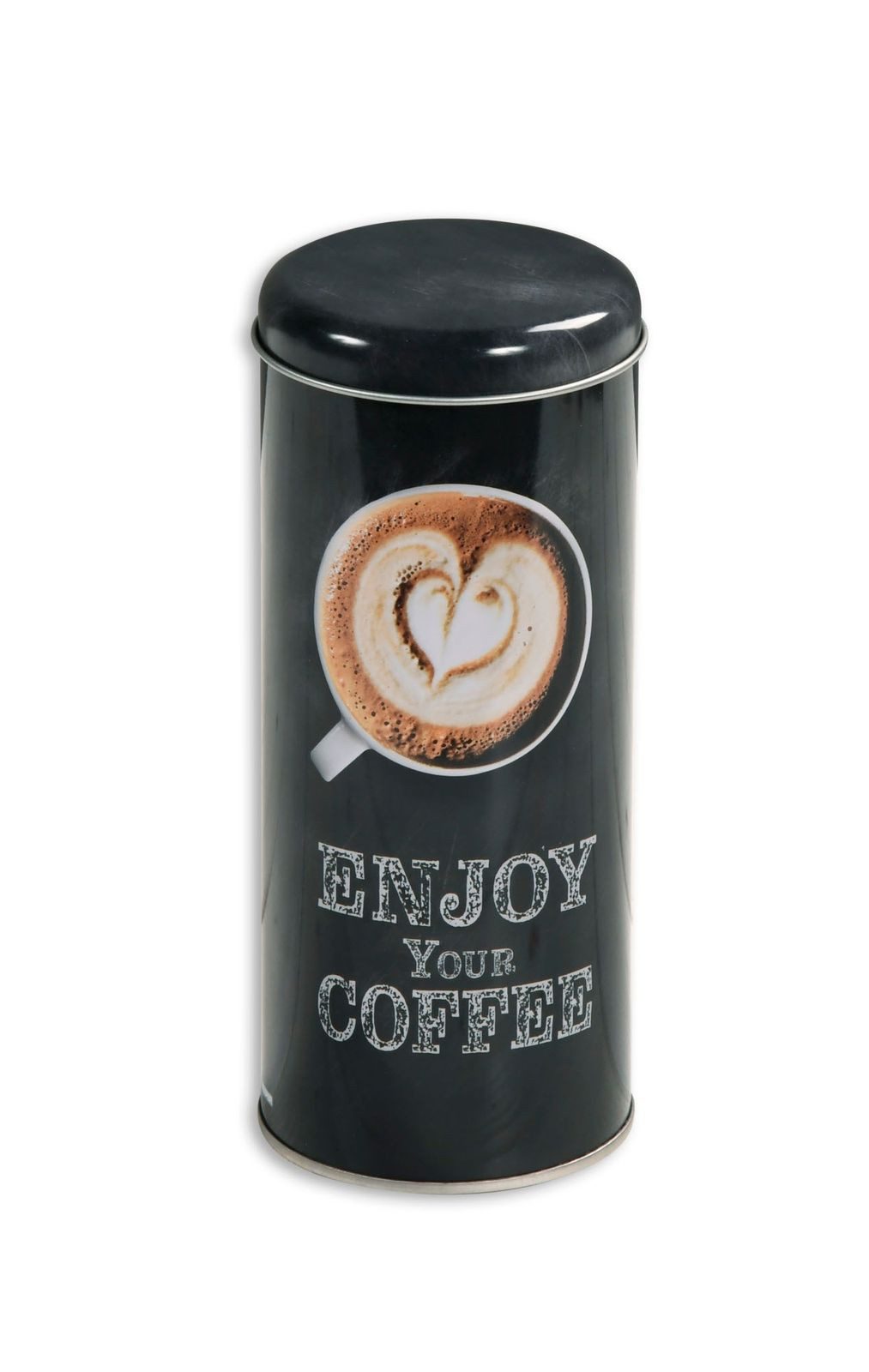Diese stilvolle Kaffeedose ist die perfekte Lösung zur Aufbewahrung all Ihrer Kaffeepads. Hergestellt aus robustem Metall und verziert mit einem eleganten Kaffeetassen-Motiv, sorgt die Dose für Ordnung in Ihrer Küche und hält Ihre Pads stets griffbereit. Mit einer kompakten Размер von 17,5 x 8 cm passt sie bequem in jedes Regal oder auf Ihre Arbeitsplatte, ohne viel Platz zu beanspruchen. Die schwarze Farbe verleiht ihr ein modernes und zeitloses Design, das sich mühelos in jedes Küchendekor einfügt. Dank der luftdichten Aufbewahrung bleiben Ihre Kaffeepads lange frisch, und sie ist für alle Sorten von Pads geeignet.
