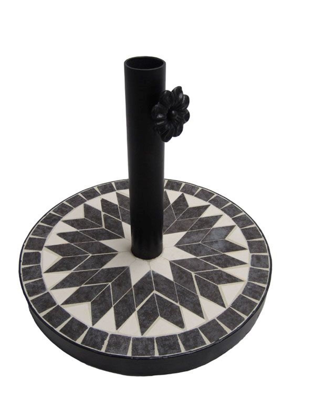 Der Schirmständer JALUA vereint Funktionalität und Ästhetik, um Ihren Outdoor-Bereich stilvoll zu gestalten. Hergestellt aus robustem Mosaik und schwarzem Metall, zeichnet sich dieser Schirmständer durch seine Langlebigkeit und Widerstandsfähigkeit gegenüber den Elementen aus. Er ist speziell für den Einsatz im Freien konzipiert und sorgt für sicheren Halt für Ihren Sonnenschirm. Das Mosaikdesign verleiht dem Schirmständer JALUA eine ansprechende Optik, die perfekt zu verschiedenen Outdoor-Stilen passt. Egal, ob Sie ihn in Ihrem Garten, auf der Terrasse oder am Pool platzieren, er wird sicherlich zum Blickfang und verleiht Ihrem Außenbereich eine elegante Note. Der Schirmständer JALUA bietet nicht nur Stabilität für Ihren Sonnenschirm, sondern dient auch als dekoratives Element, das Ihre Outdoor-Oase aufwertet. Genießen Sie Ihre Zeit im Freien in vollen Zügen, ohne sich Gedanken über die Sicherheit Ihres Sonnenschirms machen zu müssen. Mit JALUA haben Sie die ideale Lösung für einen stilvollen und funktionalen Schirmständer gefunden.